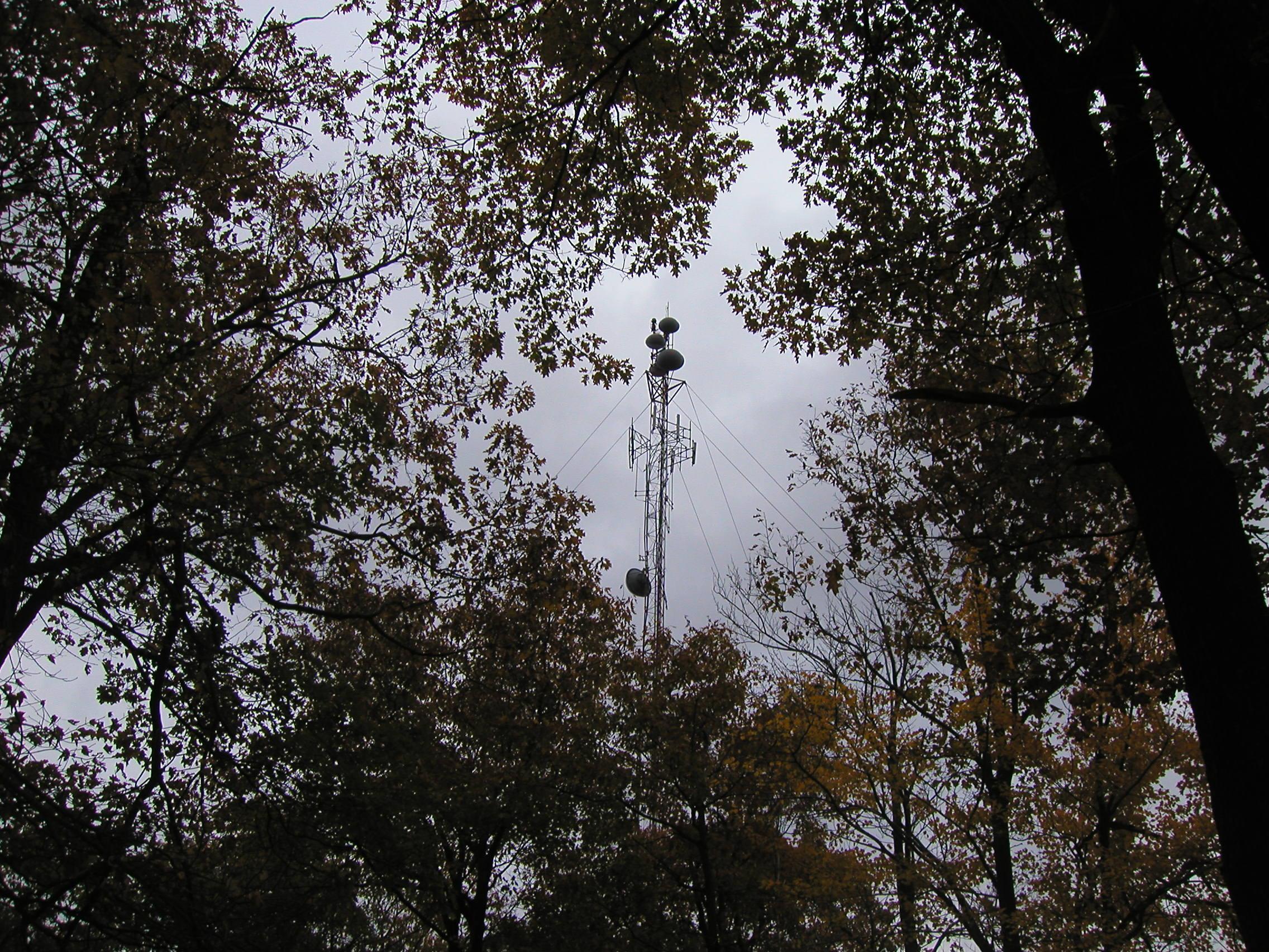 In addition to the three towers, there was a fire tower (used for spotting forest fires, as it's a high structure built on the highest point around). Despite its being behind a locked gate proclaiming them government property and warning trespassers, Eccoglyph and I got in and made it to the top of the fire tower...at which point my camera refused to take any more pictures that day.