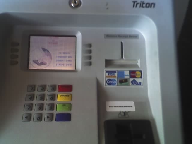 Burn Unit: I was using my phone to check my bank balance when I walked by this ATM. That's when it hit me: this poor little bugger with its outrageous fees is useful only to drunks and poor planners. The rest of us don't need cash. My phone told me my balance, I knew I could use my bank card to pay for my lunch, and I put this ATM out of mind. It made me think about doing this task: I "caught all these things in the act" of *being* obsolesced by my cell phone (or cell phones in general). Then I got to thinking about that guy who tagged ads with "I keep getting mugged in my sleep" and I had the idea to put stickers on various technologies and media which I catch in the act of being obsolesced or otherwise contained by the new medium of the cell phone. On some of them I stuck "I think the cell phone is trying to kill me." and on others I put "Please don't let the cell phone eat me." This ATM is pleading to not be devoured.