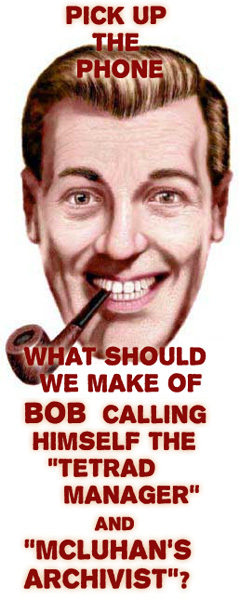 This and the photo below it are the center of the proof. The tetrad of media effects shows how a new technology or medium *simultaneously* performs these four transformations on Senses, Society, and Other Media. It is best to read the tetrad in that all-at-once mode, though also possible to focus on the particularities of each node or area.