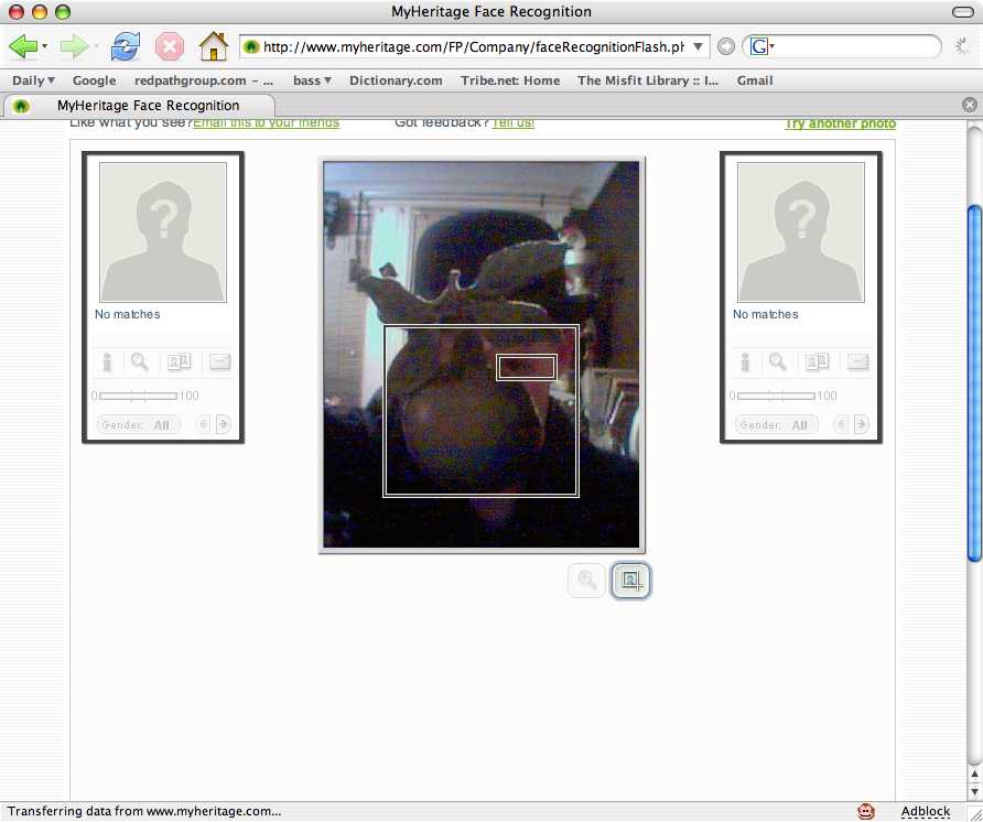 While it's unsatisfactory that attempting to feed myheritage.com an eyeball failed to return that floating eyeball creature from Big Trouble in Little China as a result, it's even more unsatisfactory that you didn't try again. My user pic couldn't be used either, but did that stop me from using another picture and finding out I look kinda like Leonid Brezhnev? Nuh-uh.