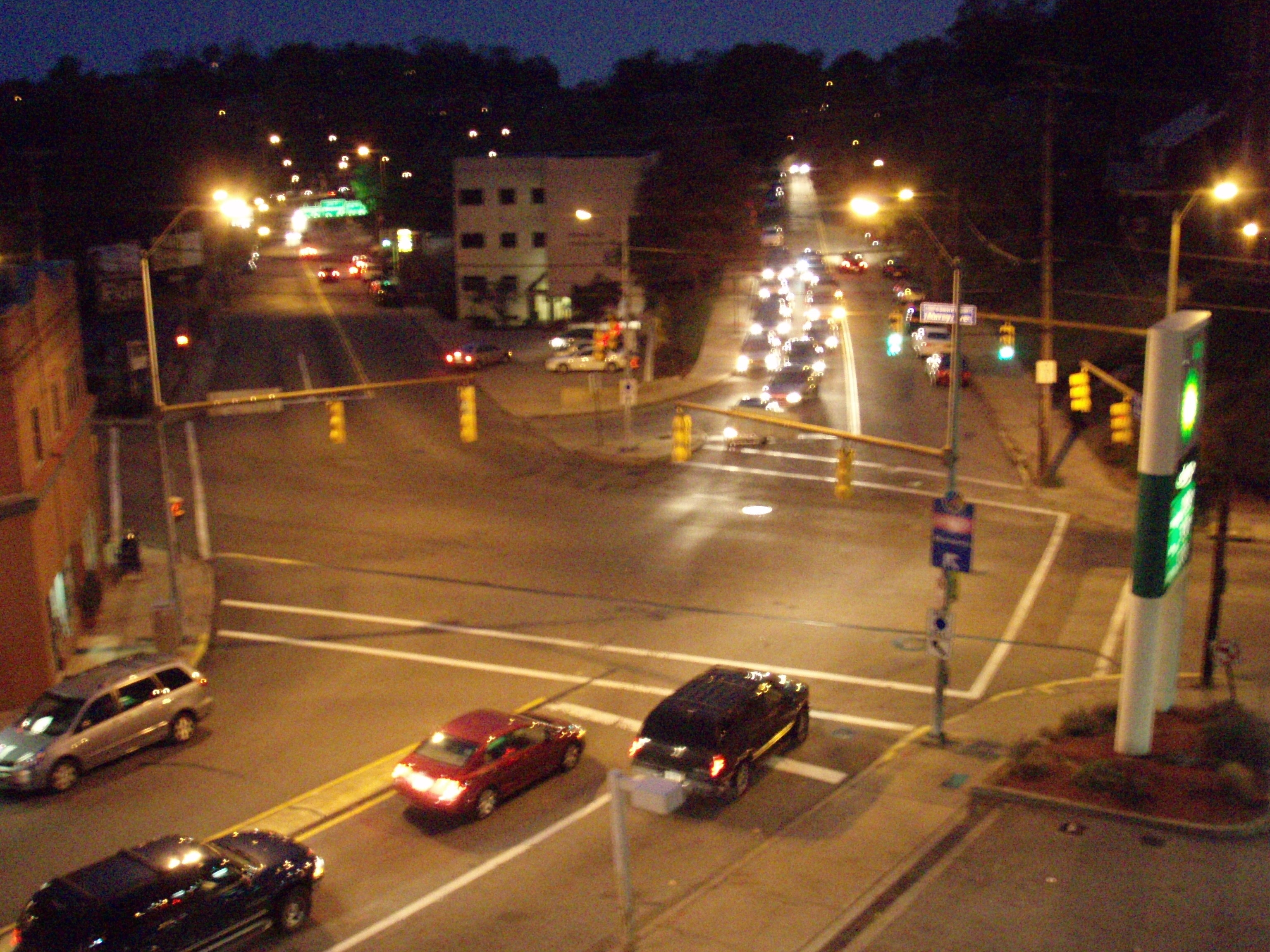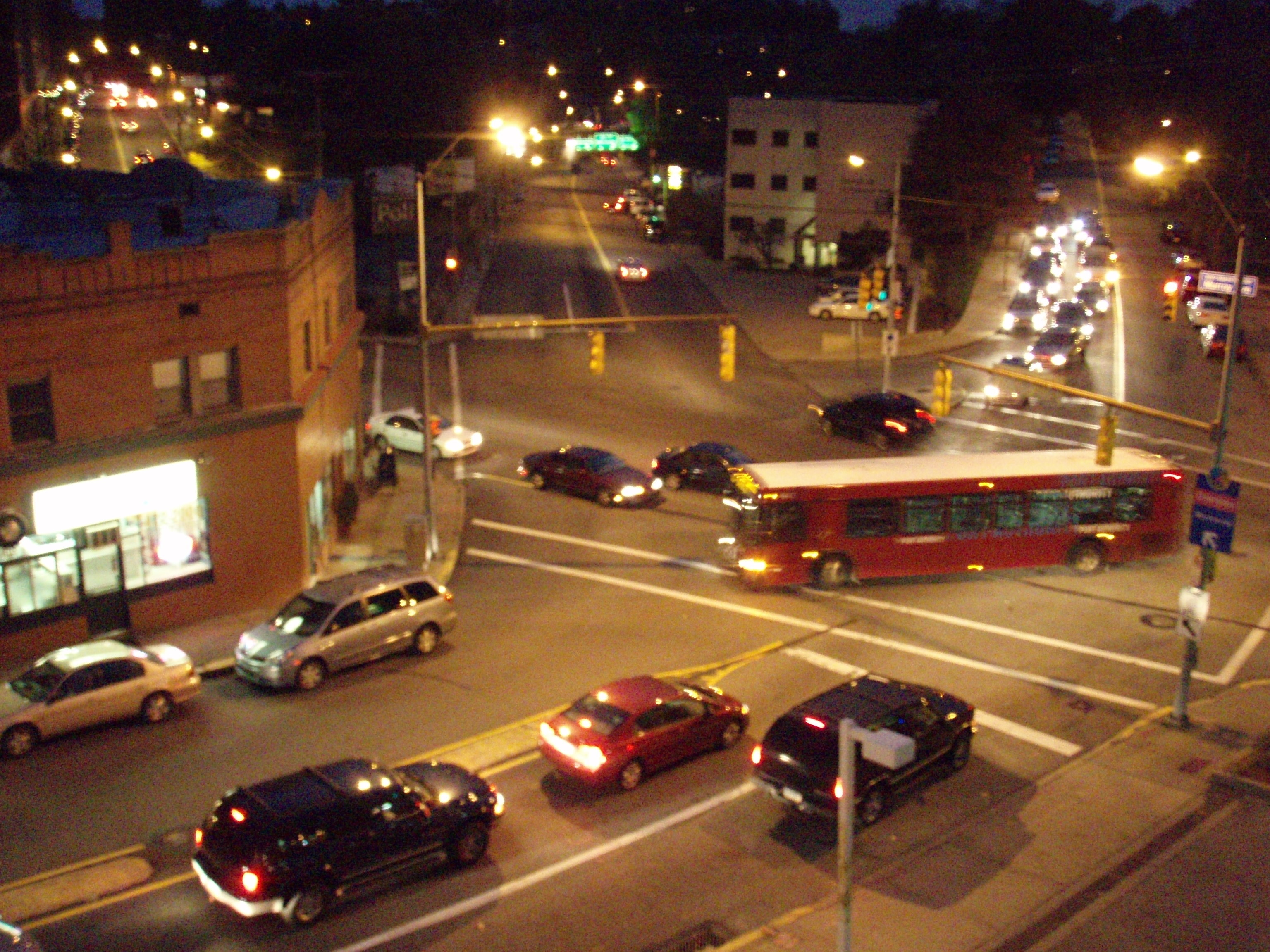 Pedestrian things, eh? How about an intersection as seen from my rooftop? EDIT: This is not my rooftop. It is my back porch which happens to be a rooftop.
