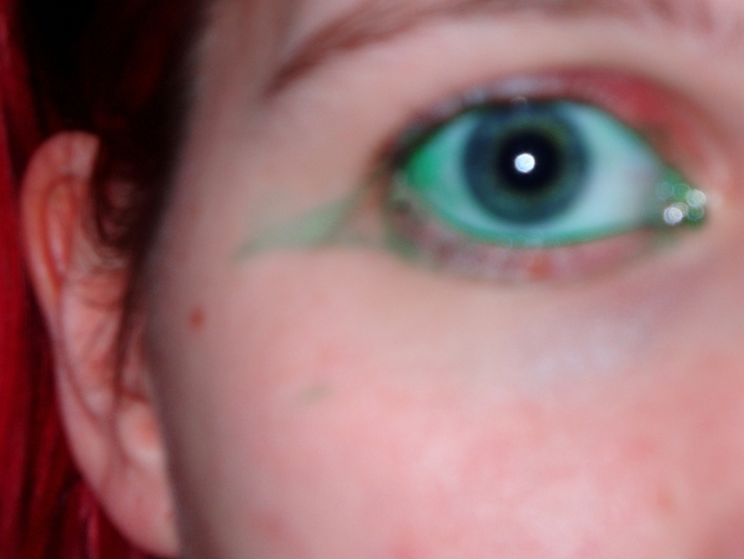 Unfortunately, it didn't turn everything green (though I was pretty sure it wouldn't and that it'd just make my eye look a little funny). There was a slight green tint to white walls, and that faded pretty quickly, as did the dye from my eye.