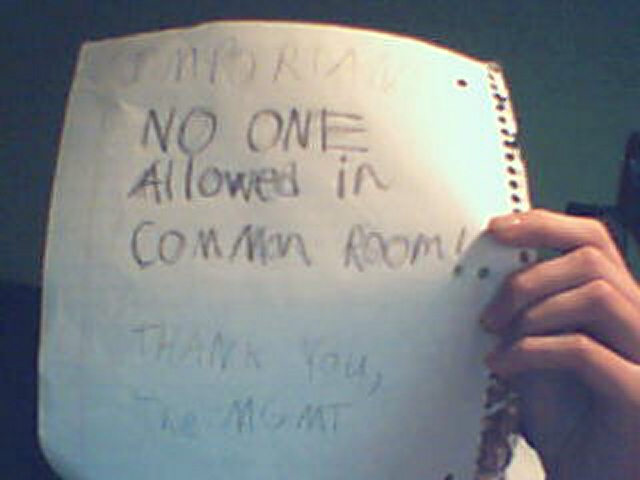 This is my sign after it was torn down and found in the common room trash