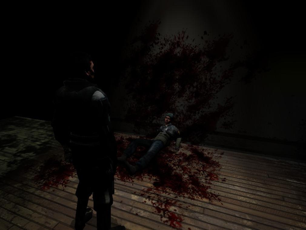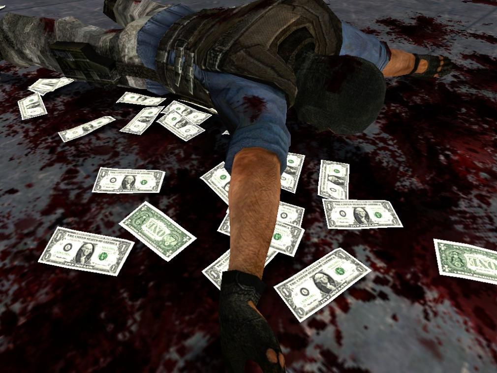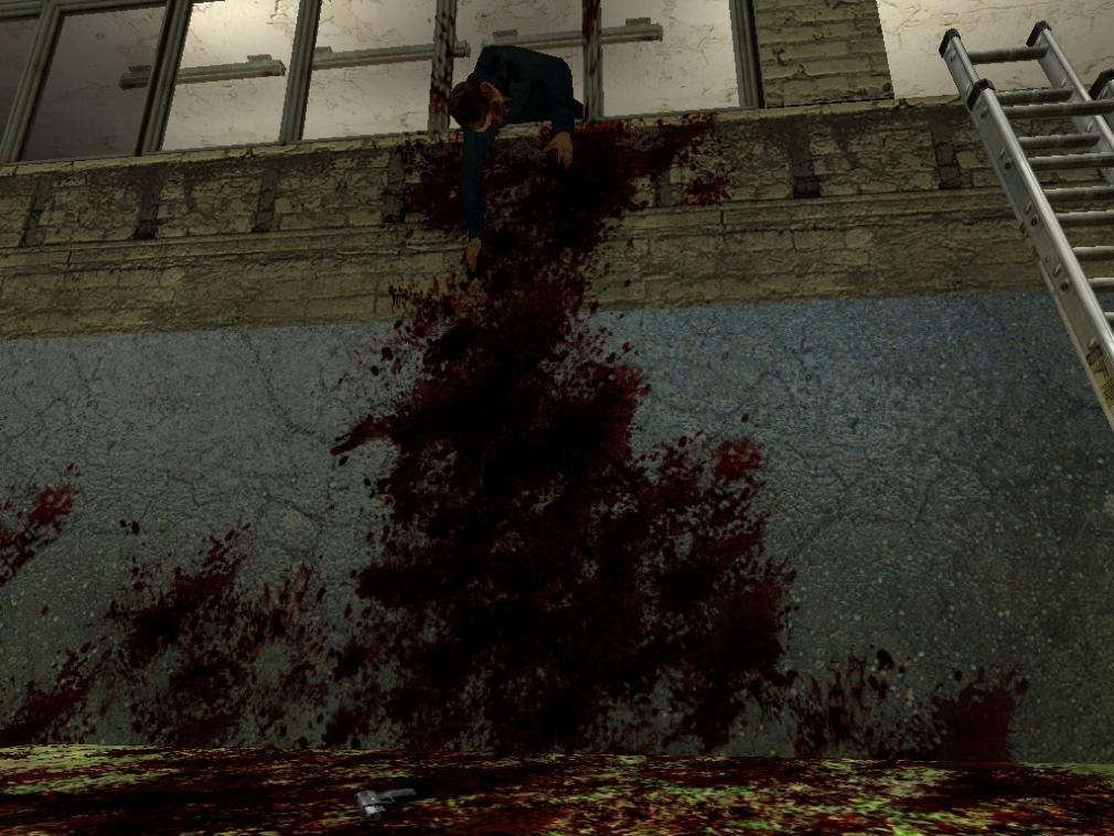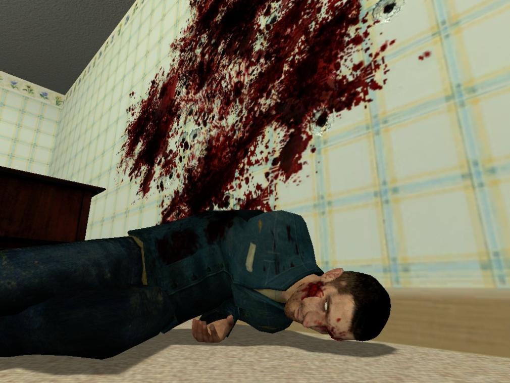 The method I use isn't destructive or thoughtless like one would think. It's complex, and takes a lot of though. I have to paint the splatter patterns on the wall first, then create a non-player character and turn it into a ragdoll by removing its health points, while placing wounds on the ragdoll, along with placing misc. objects such as guns or money and such. After that, the hardest part is done, which is posing the ragdolls. And to get the product, I need to move the camera into position and take a picture. So several different processes take place to get the final product, which is a dramatic picture like the ones shown on this page. I believe all of this together makes it artwork.