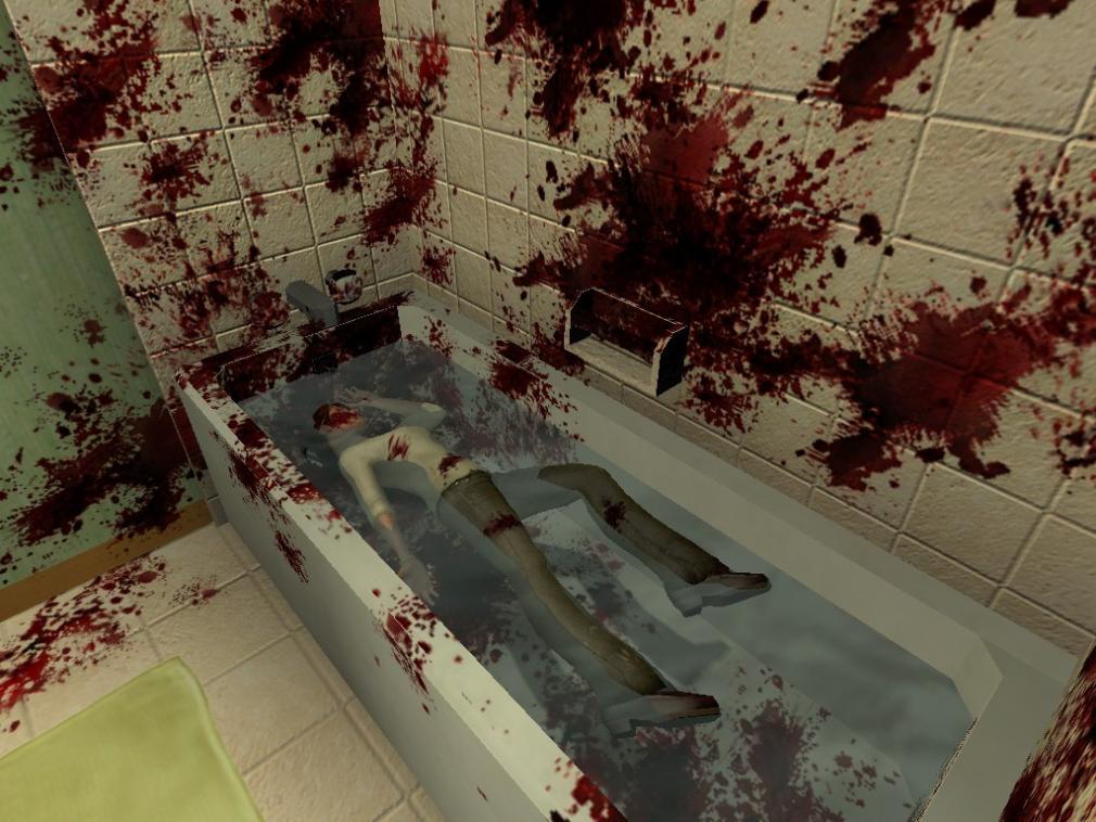 I didn't vote on this back when you originally posted it because I wanted to think about it, look at the pictures and really take them in. On coming back to it I'm finding little details that I actually love. The window with the blood spattered pane of glass on one side and the empty pane, sun shining through on the other. Nice. And the look of the body in the tub was also nice (though I found the blood splatters on that one felt overdone and distracting... how would you splatter that much blood and die in the tub with so little blood in the water (I know you might not have been able to do water/blood in GM)).