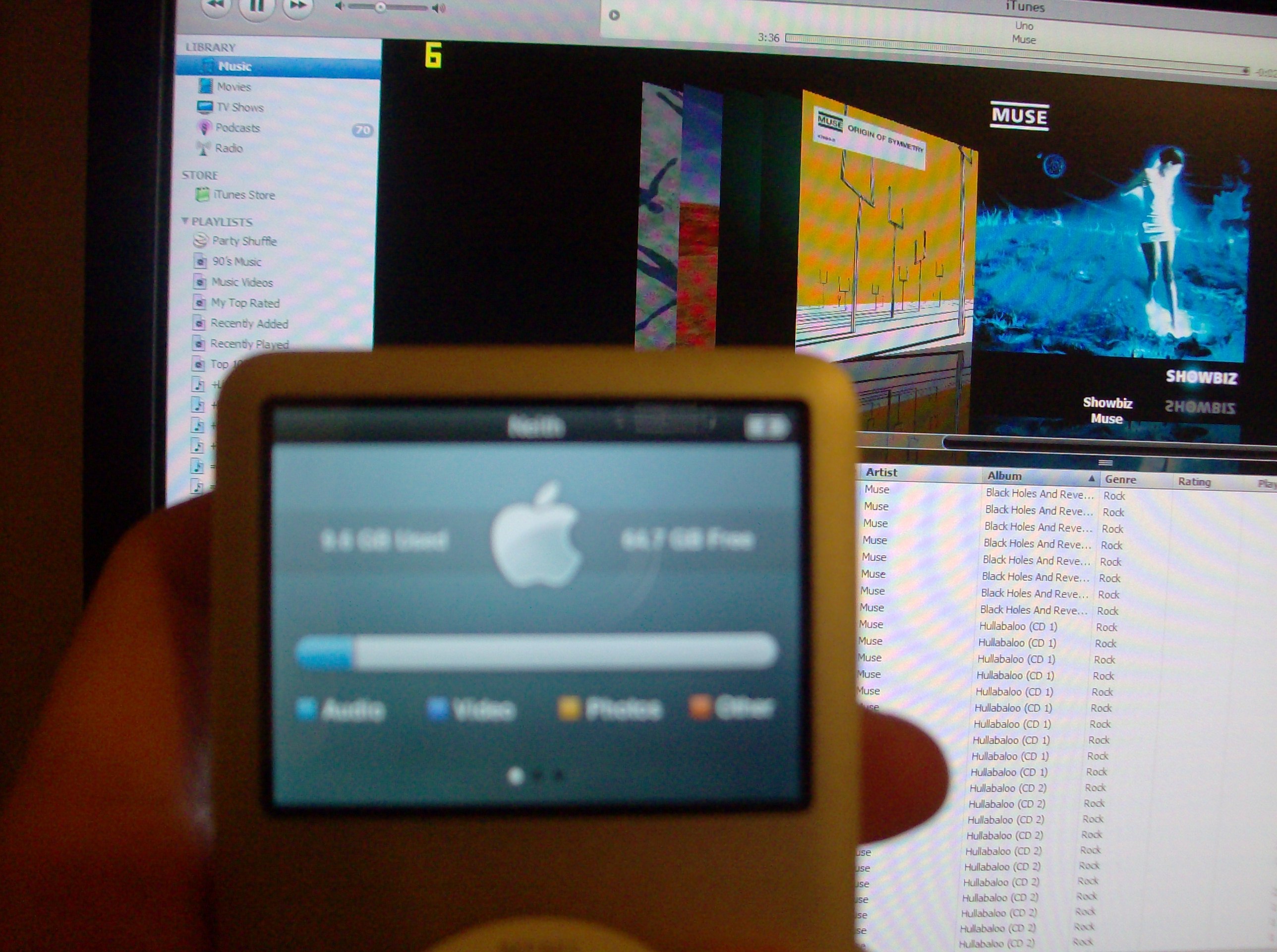 At the bottom, you can see that my iPod is empty except for the games, languages, and misc. applications it comes with.
