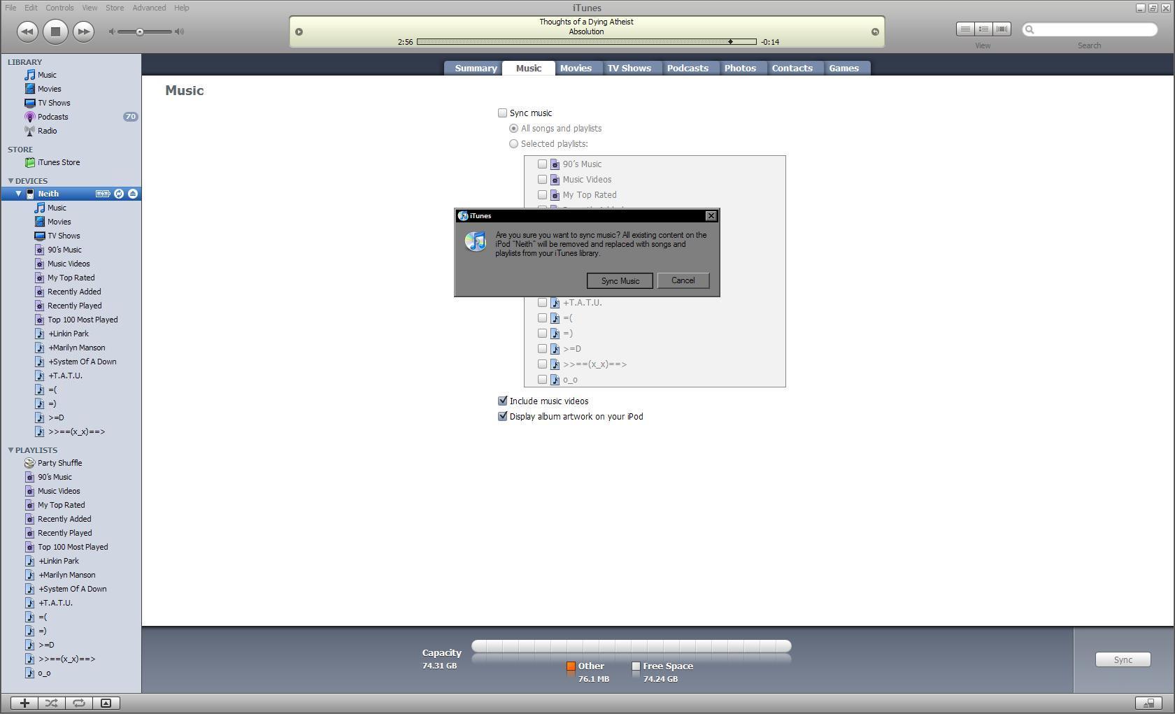 It saddens me a little to say that I'm pretty much completely dependent on my iPod. It helps me sleep, eat, and make it threw long boring drives. And having no music, or podcasts for that matter, would lead me to do drastically desperate things like play virtual reality internet game simulations.