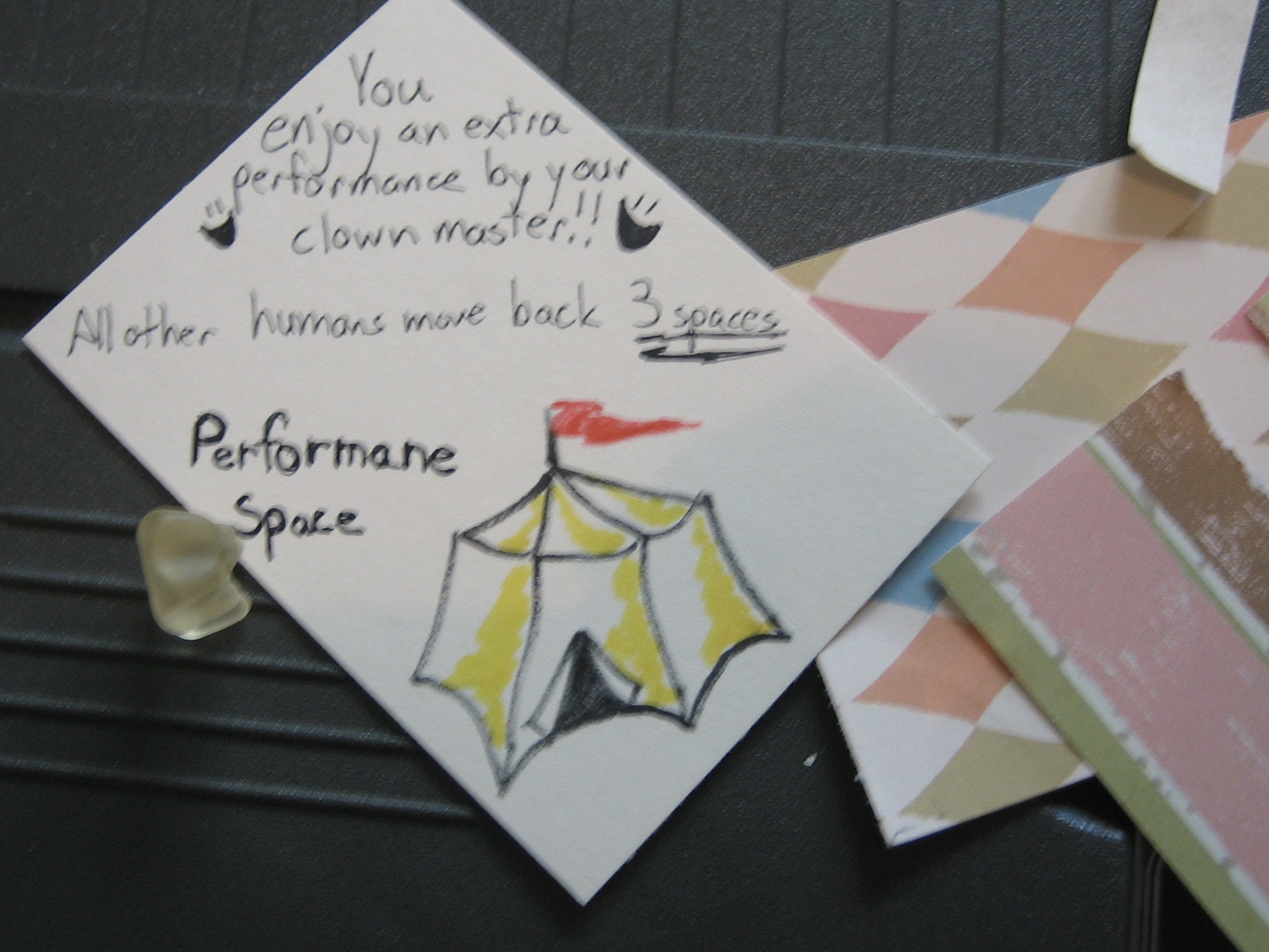 You enjoy an extra performance by your clown master!! All other humans move back 3 spaces.