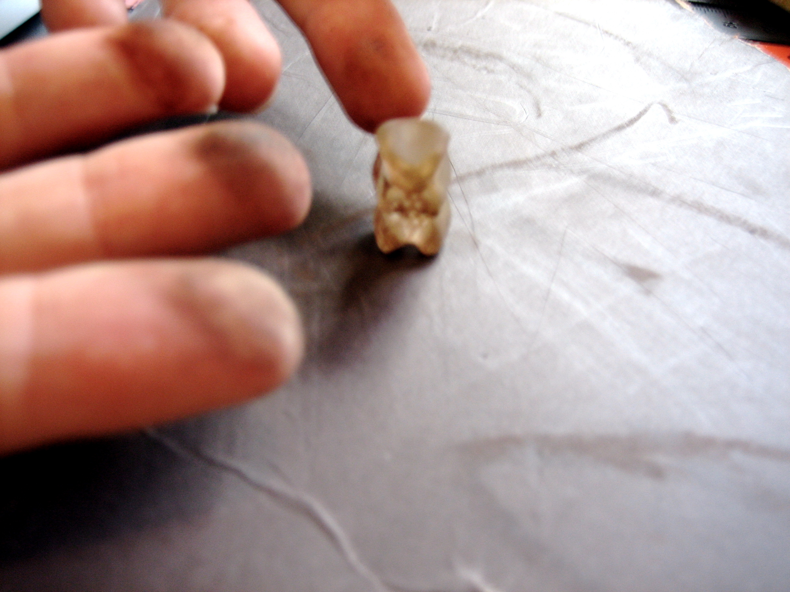 Excited, we began to dig, and soon came upon a mysterious artifact. It looked to have been damaged at some point in the past, and only pieces remained: