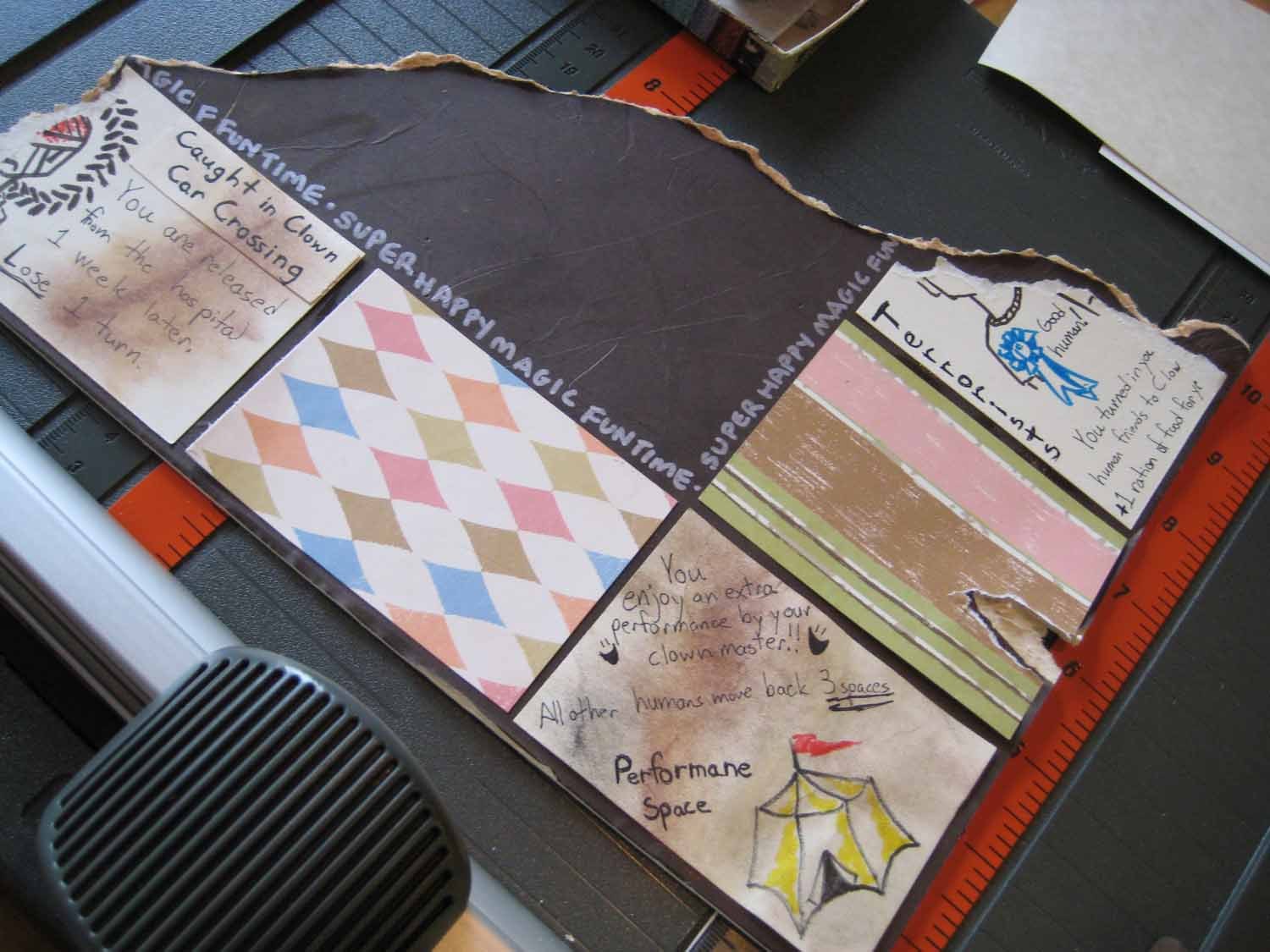 No clowns or human slaves were harmed in the execution of this task; however, one brave gummy did succumb to pastel dust inhalation in the service of aging the faux artifacts.