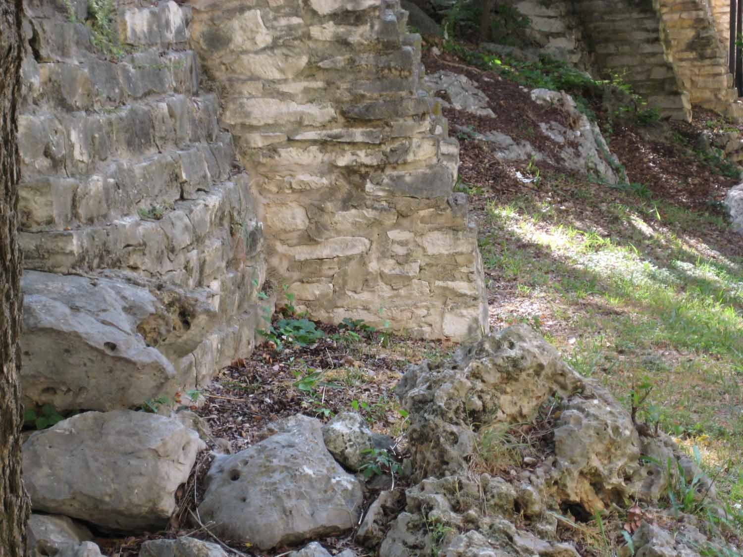 At first glance, the bricks that lay scattered at the base of the vast edifice indicated it had been crumbling for some time. Only in retrospect would we remember that many of the stones had not yet been covered by leaves or dirt, and realize that the black soot scars across the rocks may have originated in something other than a campfire placed too close to the wall.