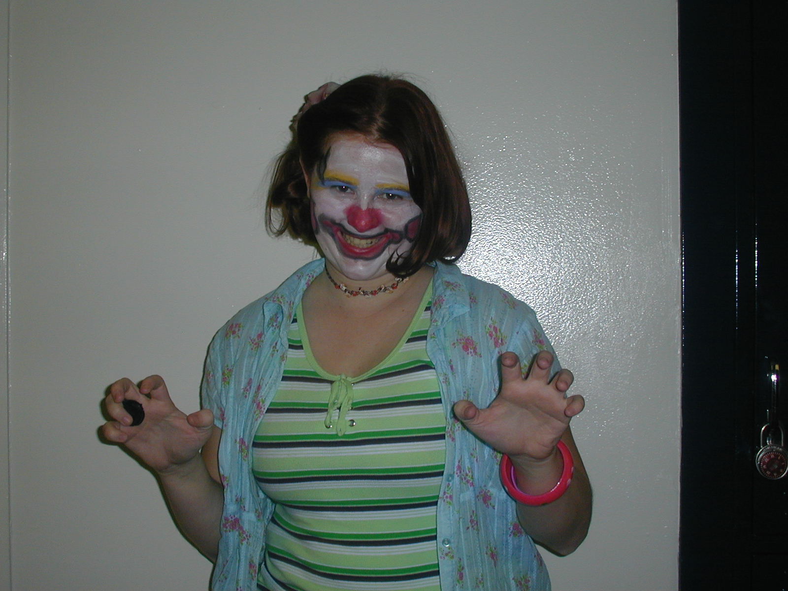Aside from the horrendously clashing outfit, I have on some lovely facepaint, giving me a clown face for a day.