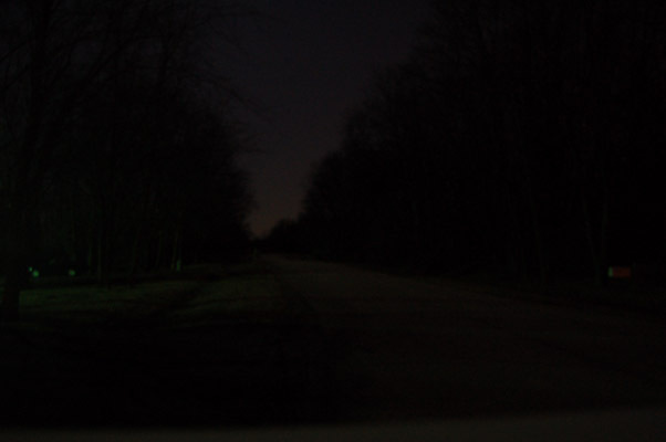 As I got close, though, I figured one more picture wouldn't hurt, as there was a nice glow coming from a shed in the forest. Out of the ten pictures I took, only 1 came out.