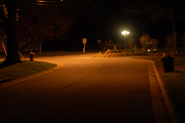 Even though I despise these street lights, they gave off a really awesome glow for my camera. I tried to take at least one significant picture at each light. Given the barren environment and my inability to sit still, this was difficult. There are some nice houses on my street, though.