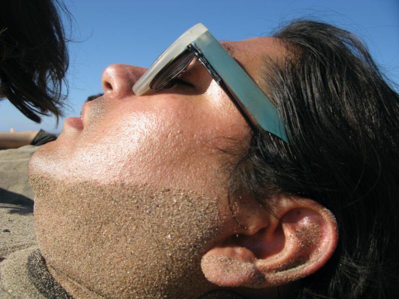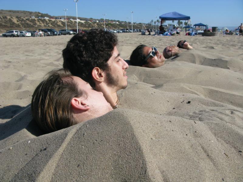 We encouraged him to take as many as he liked. Dimitri was convinced that he was done and put the camera back and left us alone. But it turns out being buried is rather comfy. So we all stayed sitting encased in warm sand for awhile.
