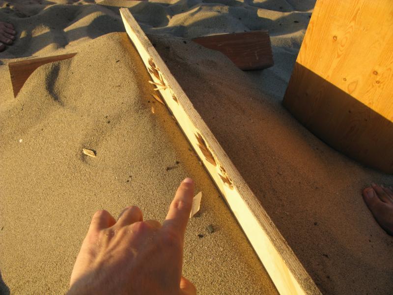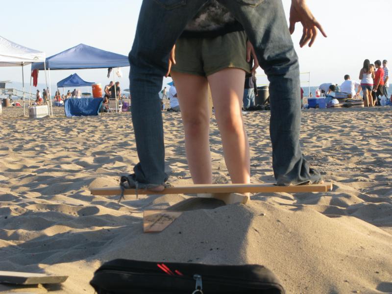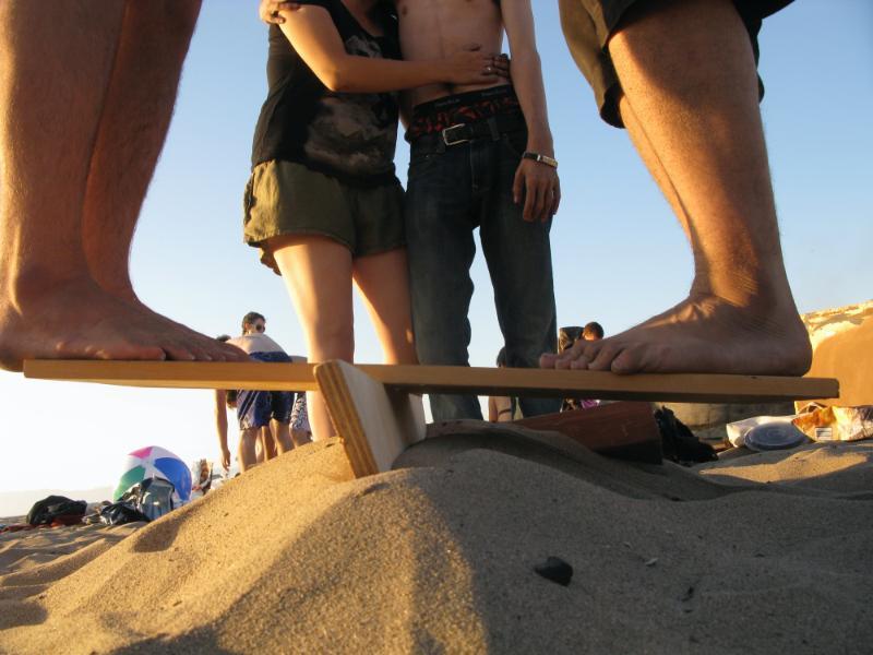 And we devised a game where we buried a triangular piece of wood in the sand and then tried to balance on a piece of wood straddling it. It was a lot more fun (or as Lincoln likes to say "funner") than it sounds. Especially when we put two people on it. It was about this time that Heatherlynn showed up, and more rejoicing was had.