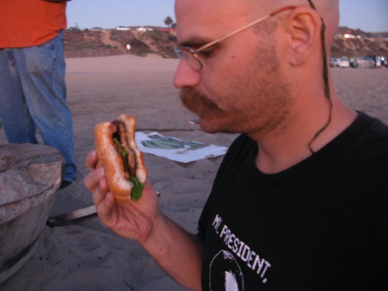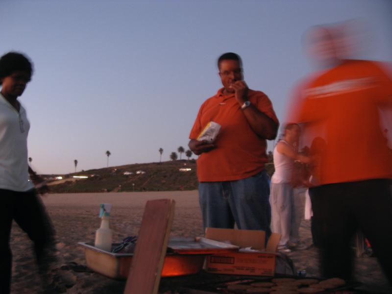 And then a ways down the beach, a large group came with tables and coolers and propane tanks and they looked they were ready for a huge party, and after a few minutes of them establishing themselves, they sent delegates over to our little party and asked if they could use our fire to cook their burgers, because the propane tanks they brought were empty. We happily invited them over.