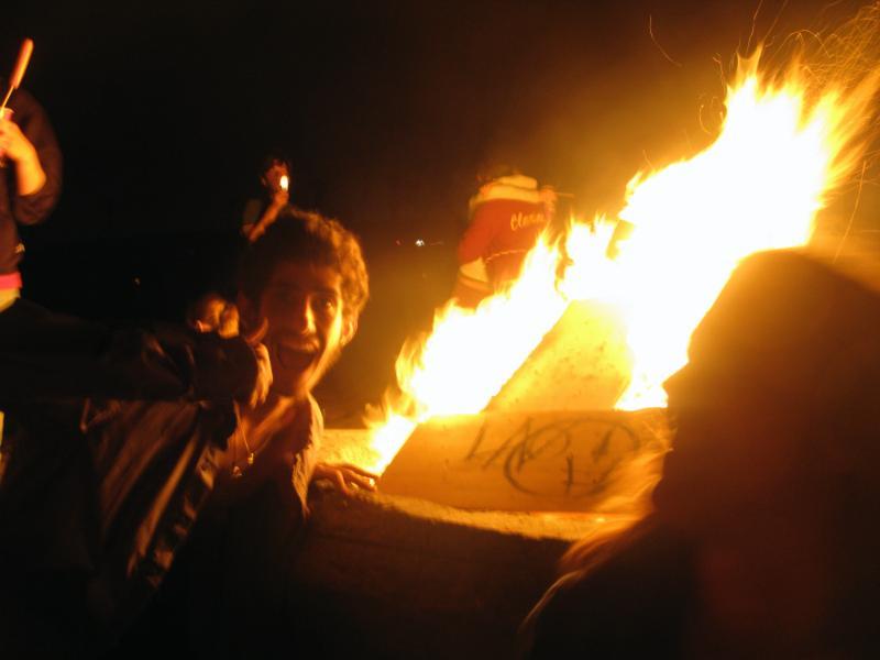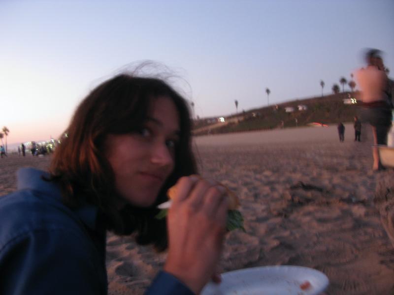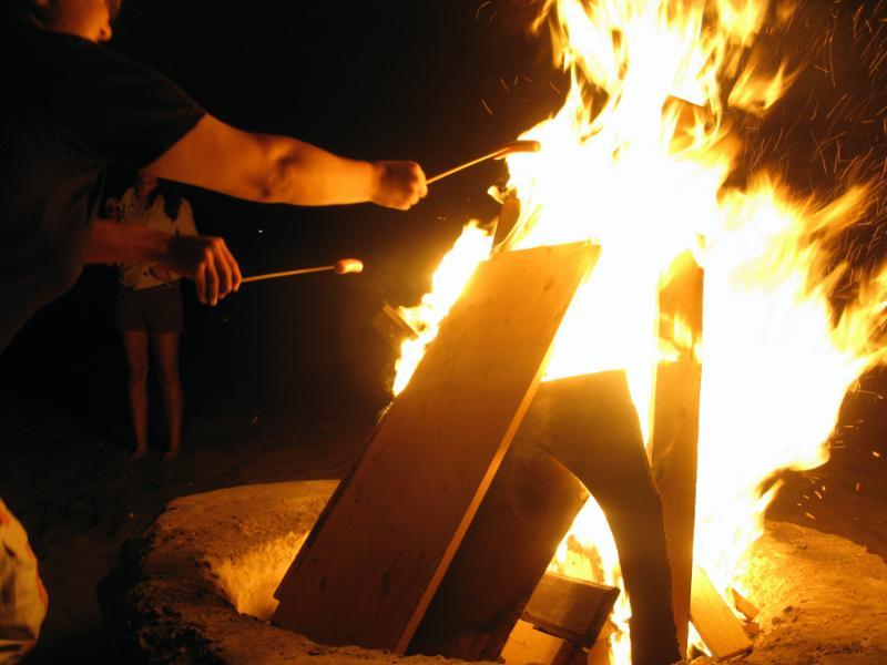 But that's not the end of this praxis. Because we spent the whole day at the beach and had many adventures. When we got back from galavanting in the waves, Dimitri and his three hip friends asked if they could use our bonfire to cook their marshmellows and hot dogs and whatever, and we decided to invite them all over to join us, which they did. We were all especially taken by Kim, who was a lot of fun. They shared their marshmellows with us.