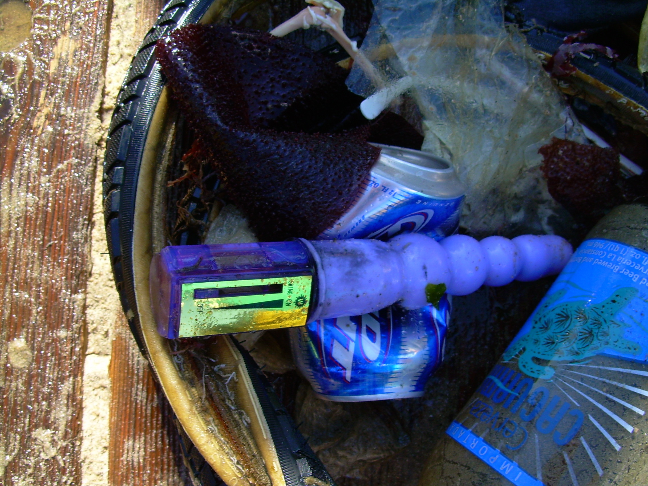 The waves had stirred up so much sediment that visibility was about six inches. I lost my partner three times, twice when we drifted slightly apart and once when a dive-team collided with us, and in the confusion (like a bad romantic plot) the two couples switched partners. Even more than that, the surge from the waves kept pulling us back and forth, a few feet every few seconds. Staying still was impossible. We had to sway with the powerful surge, creeping along on the bottom searching for anything within a few inches of our masks. Without my partner’s apparently preternatural skills of navigation and multitasking I would have been completely out of my depth (metaphorically, as dives go it was very shallow). I found half my trash because it literally hit me in the face.