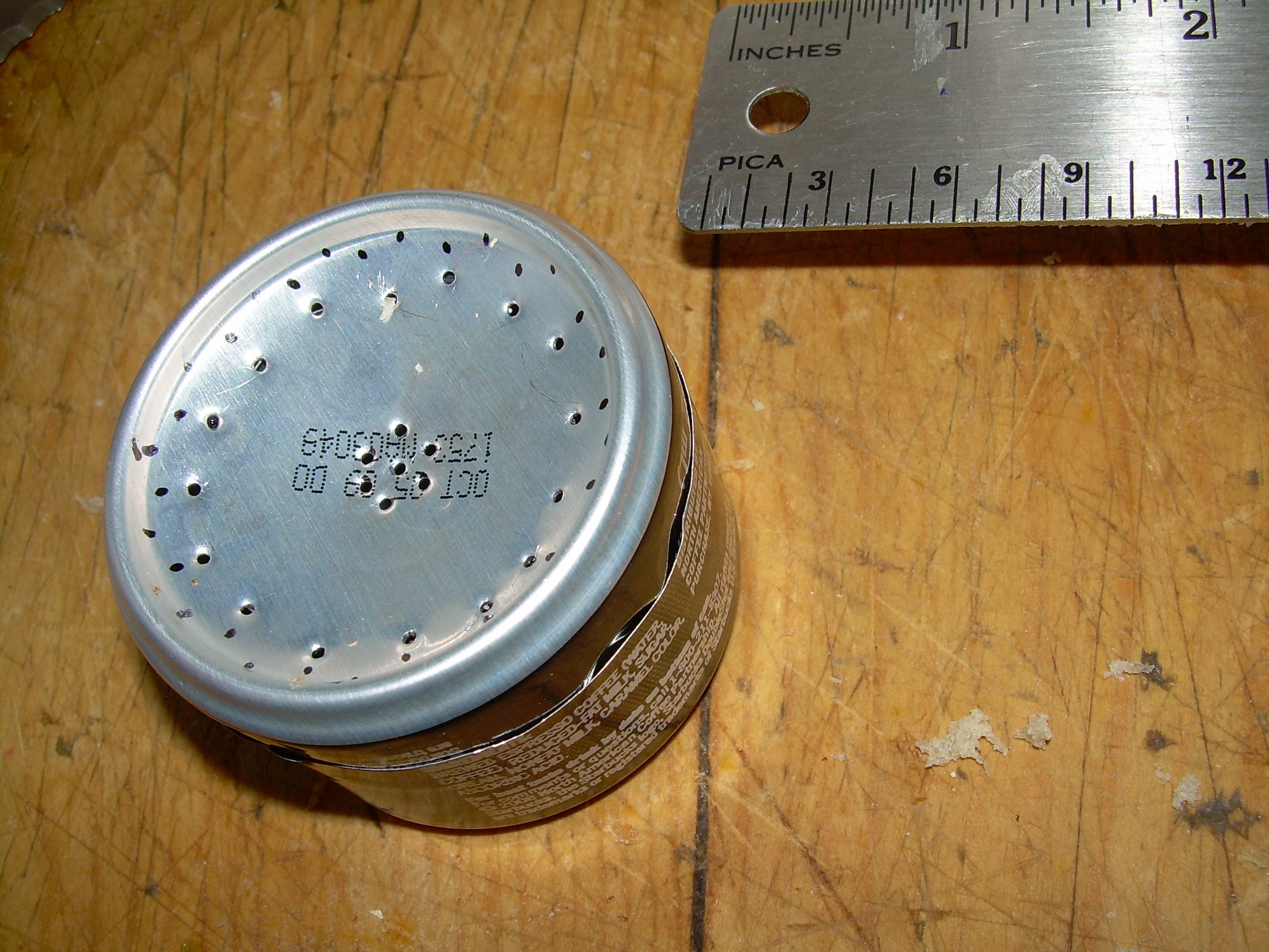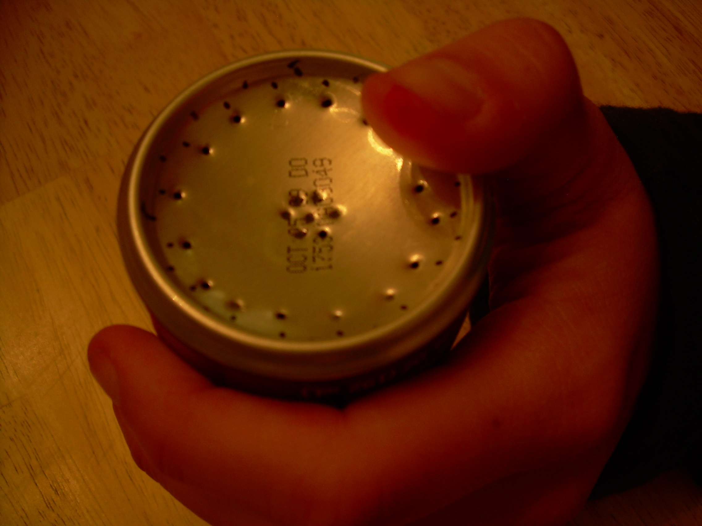 To do so, we punched holes in the tops of an empty Starbucks can.
