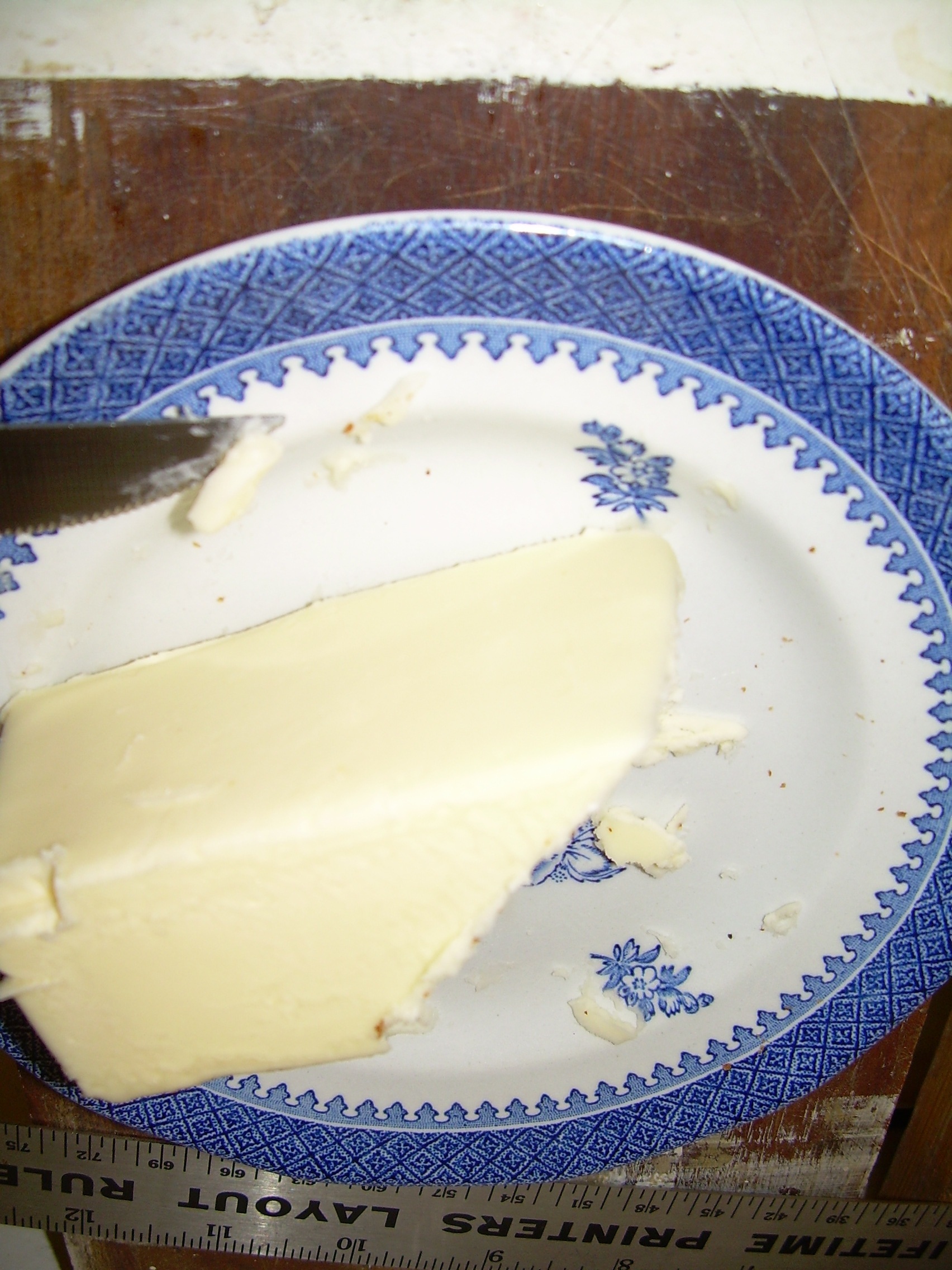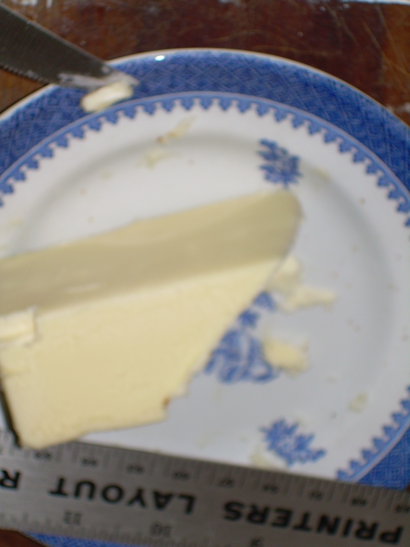 Instead of working out the 10X smaller butter as we had the loaf, by area, I decided to make it 10X smaller in every measure - length, width, height - so by volume, it was 1000X smaller. Precision was needed.