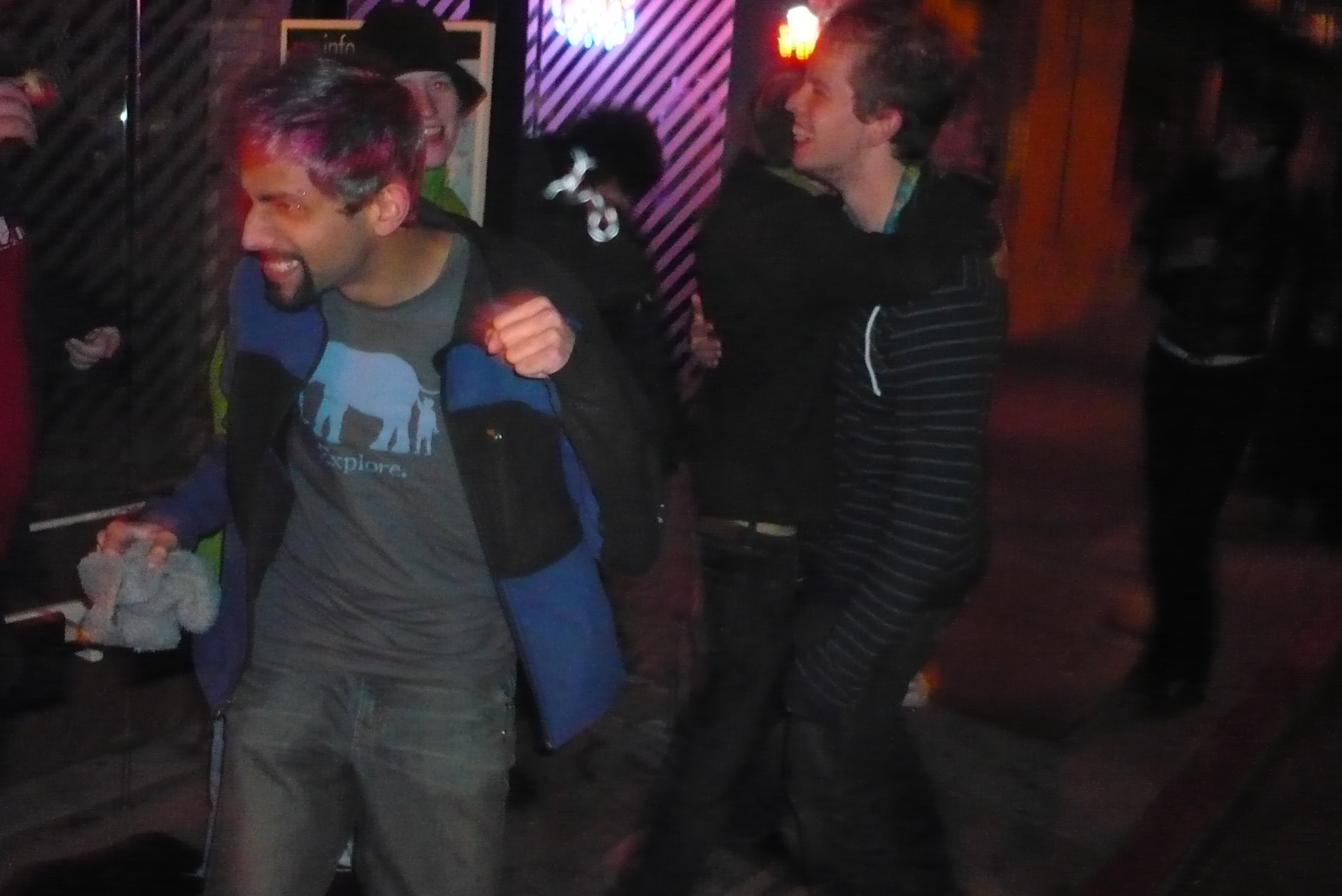 The original Rubin arrived, and with his presence there was much dancing and rejoicing. Limousines full of satiny women came and went, Koyâh (as he was then known) drank and forgot why Rubin zip-tied his shoes together(no no… I am pretty sure I remember I am just kind of ashamed and don't want to repeat myself here), a madman with a drill destroyed parking meters, p00n sat in some gum (Huzzah! I saw them!) and the dispersing crowd from the party next door joined us in our revelry. An awesome time was had by all.