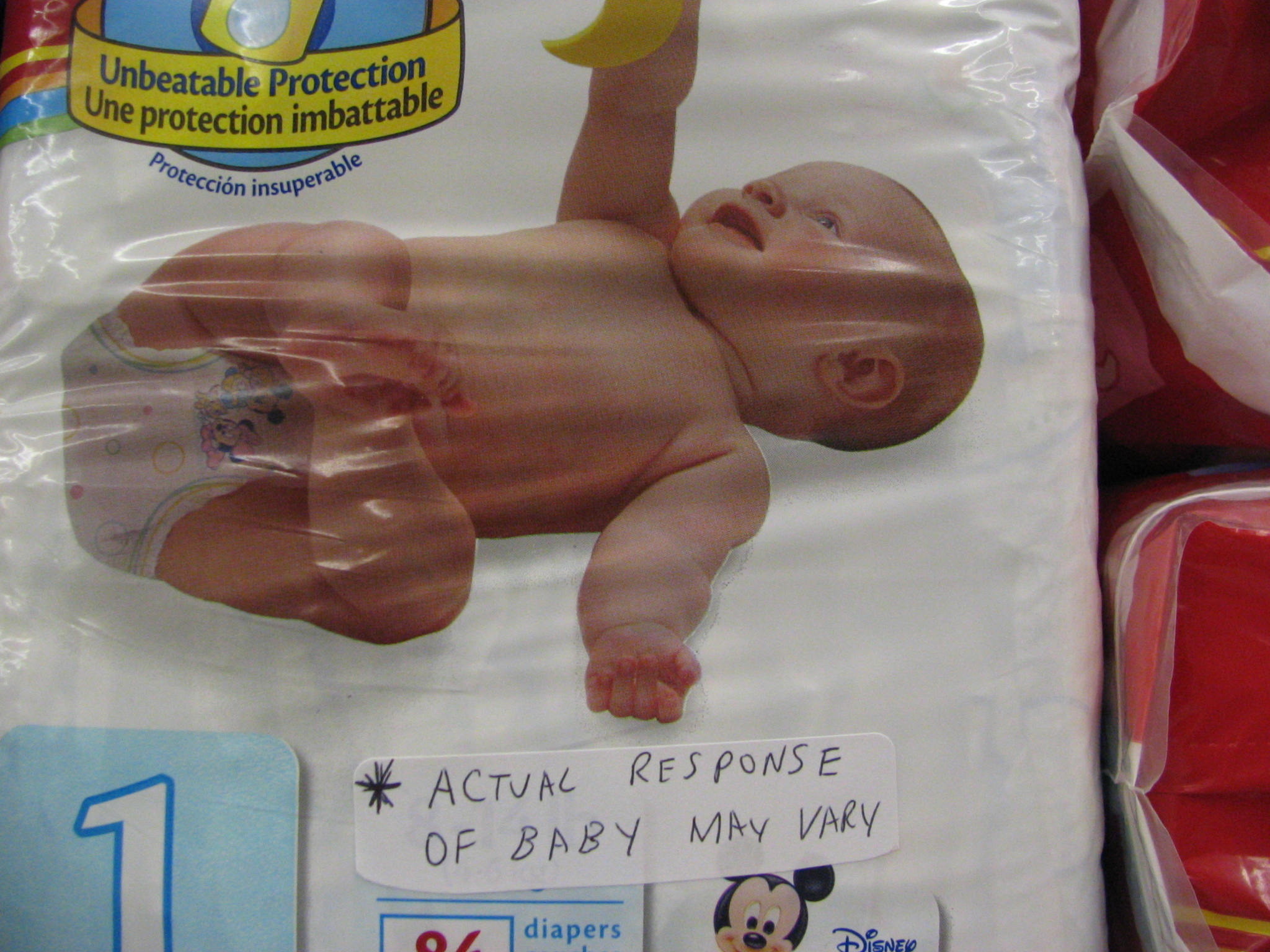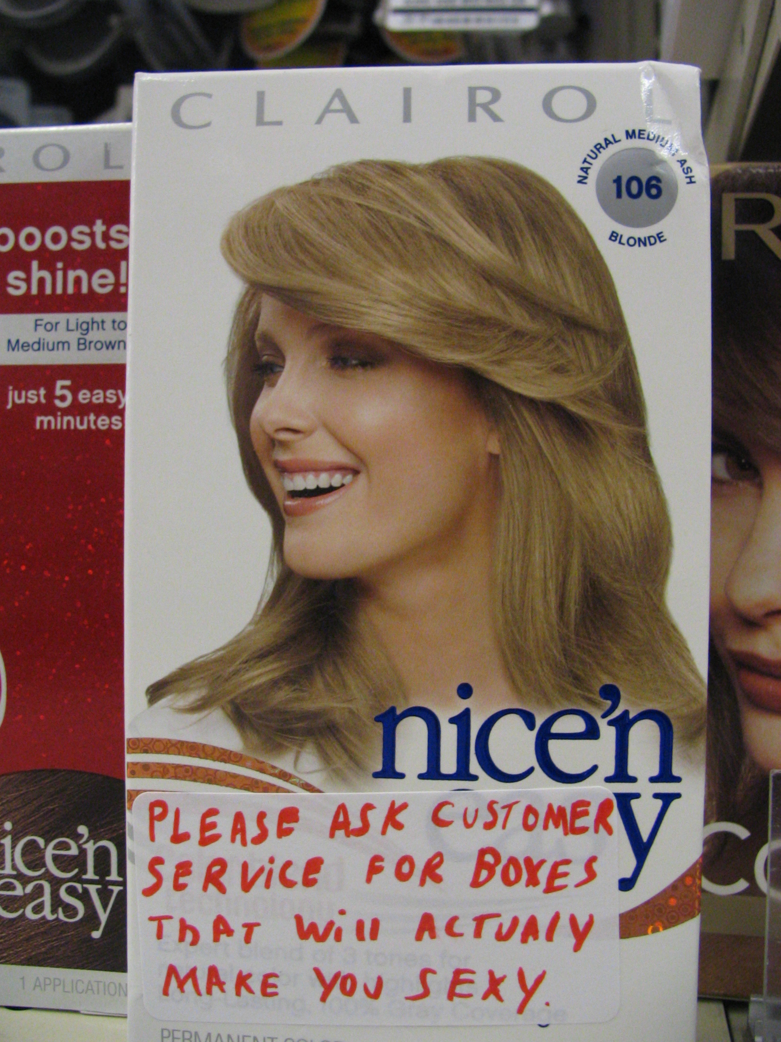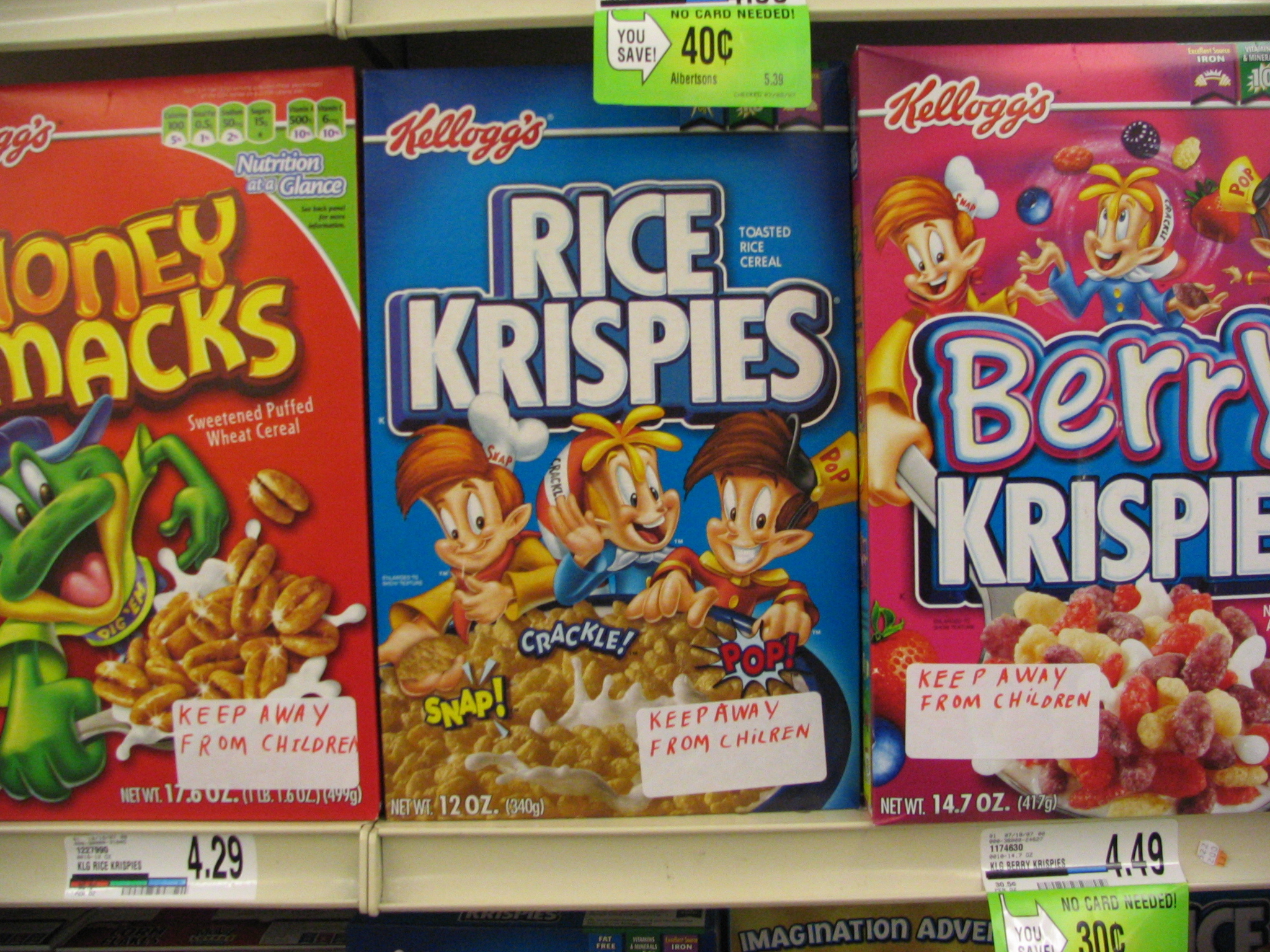 I wrote, applied and photographed all of these in busy isles with people everywhere, most were slogging along in zombie mode or just couldn't care to notice or notice to care. Once I even had a women reach in through my arms to grab some cereal, she didn't have a care about what I was up to. So much for my sales strategy!