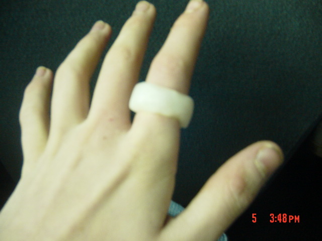 Using the file I made the hole bigger and bigger so it could fit on my fingers. (took ages :/)
