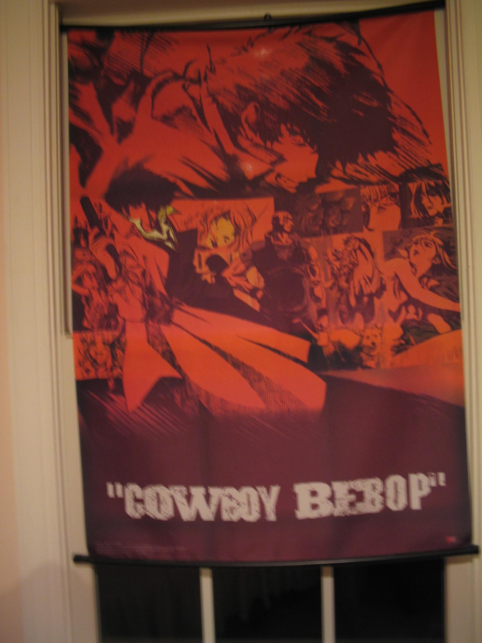 These are things I've been using for the past several years. The first picture is my makeshift window shade, which is in fact a wall scroll. It serves me well, although it does not cover the entire length of the window.