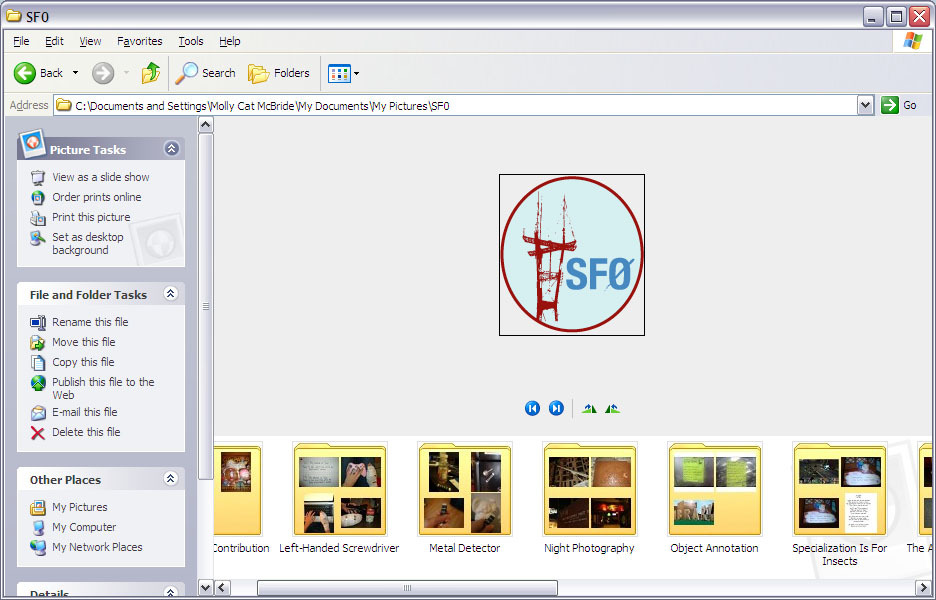 This is the SF0 folder I have within My Pictures. I have folders for every task I've done that required more than one picture..you know, so I can organize them.