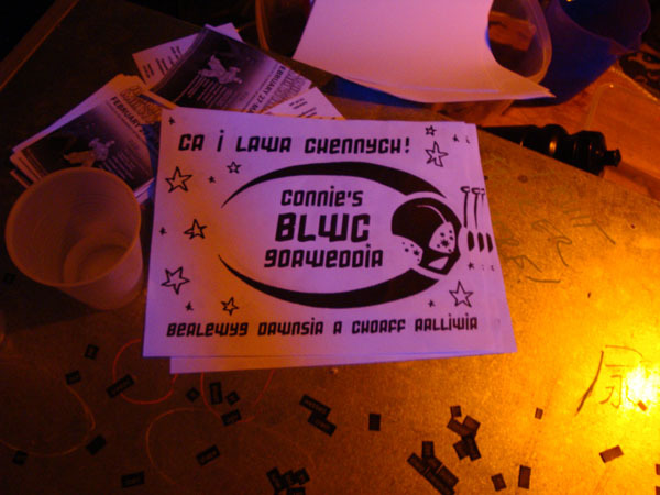 Most of the room parties are the same every year; that is to say, they are fixtures at the CON and are beloved by the CONgoers. Three such places are House of Toast (which serves toast with your choice of more than 50 toppings), Cow Asylum (a dance party beerfest run by Wisconsinites that usually has drunk girls gyrating on the veranda), and Connie's Space Lounge (not technically a room party because it's officially part of the CONvergence programming...it's a huge, dark, blacklit room full of glowing bodypaint, glowsticks, techno music, and fruit smoothies and it's run by a large group of SF0ers).