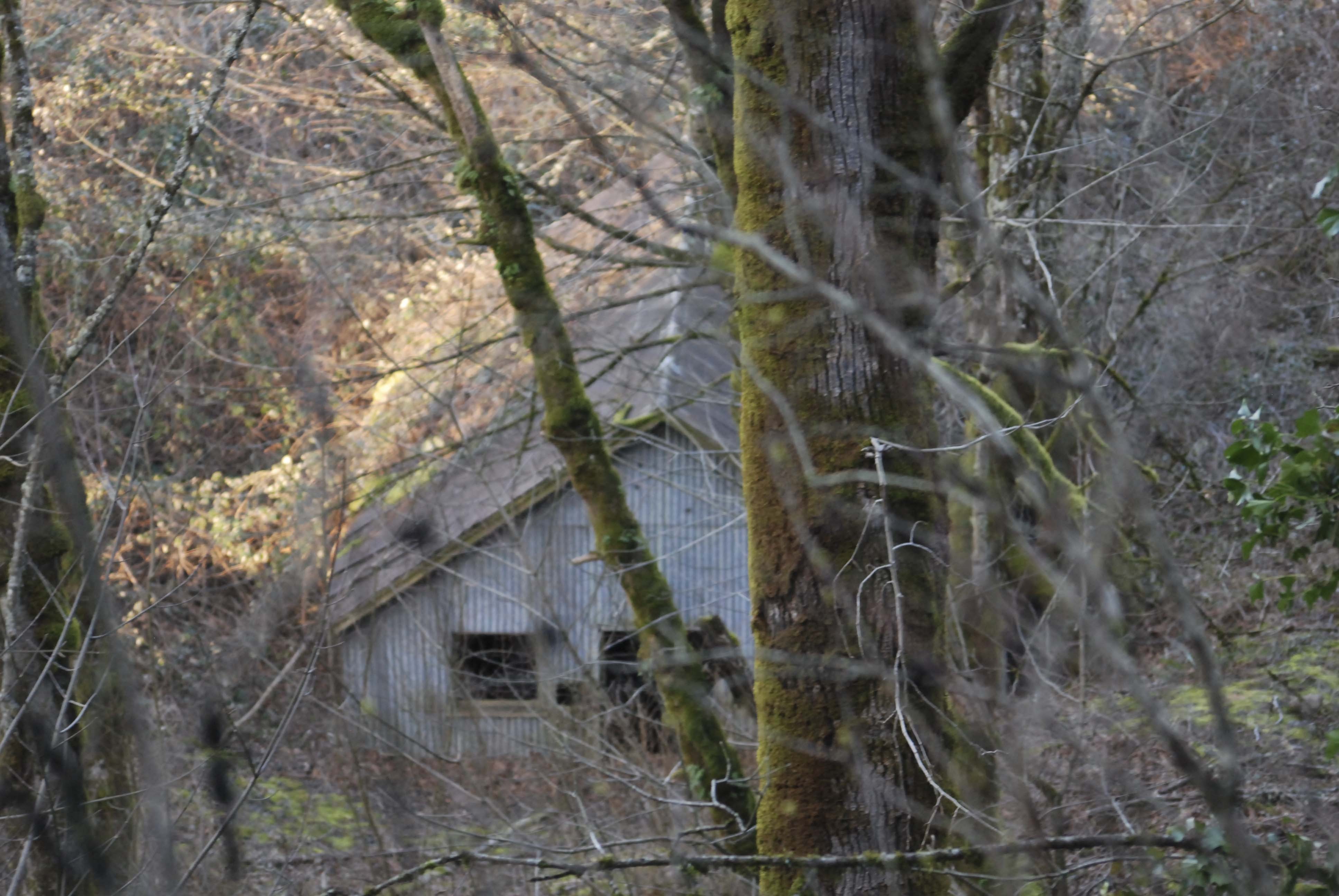 It is hard to tell from this picture, but the whole base of this building is overgrown with thorns. Not sure what it used to be, but it is very close to total collapse.