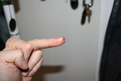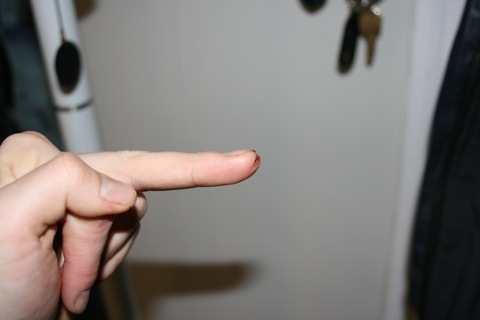 Ugh. Smashed it open. This would happen about once a day. It is the 6th day and it would still bleed with the slightest interference from another object. Probably means it could've used a stitch or two. Who has health insurance these days though? Not me!