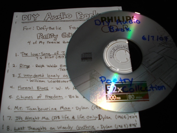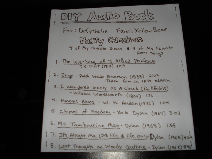 I know full well that nobody is likely to listen to all of this, but here it is in it's entirety to prove that it really got done. If you don't know these poems I am glad i could bring them to you for the first time. The Dylan suits me best. These really are great great pieces of writing, if you have the time to listen you should. The whole thing runs about half an hour. I of course have included photos of my procedure as well as the gifting of the completed task.