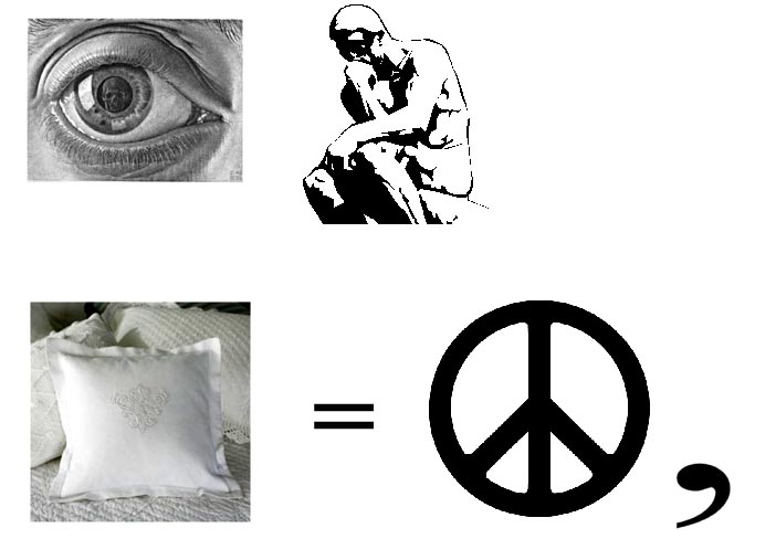 INSTRUCTIONS: Make a sentence out of photos you find online (or on your computer). Each photo makes up a word or concept.