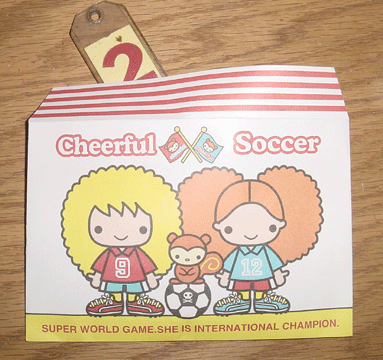 2. A badly translated Asian envelope with weird text. I filled it with cat food and put a #2 key chain in it. It says "sample" on the back.