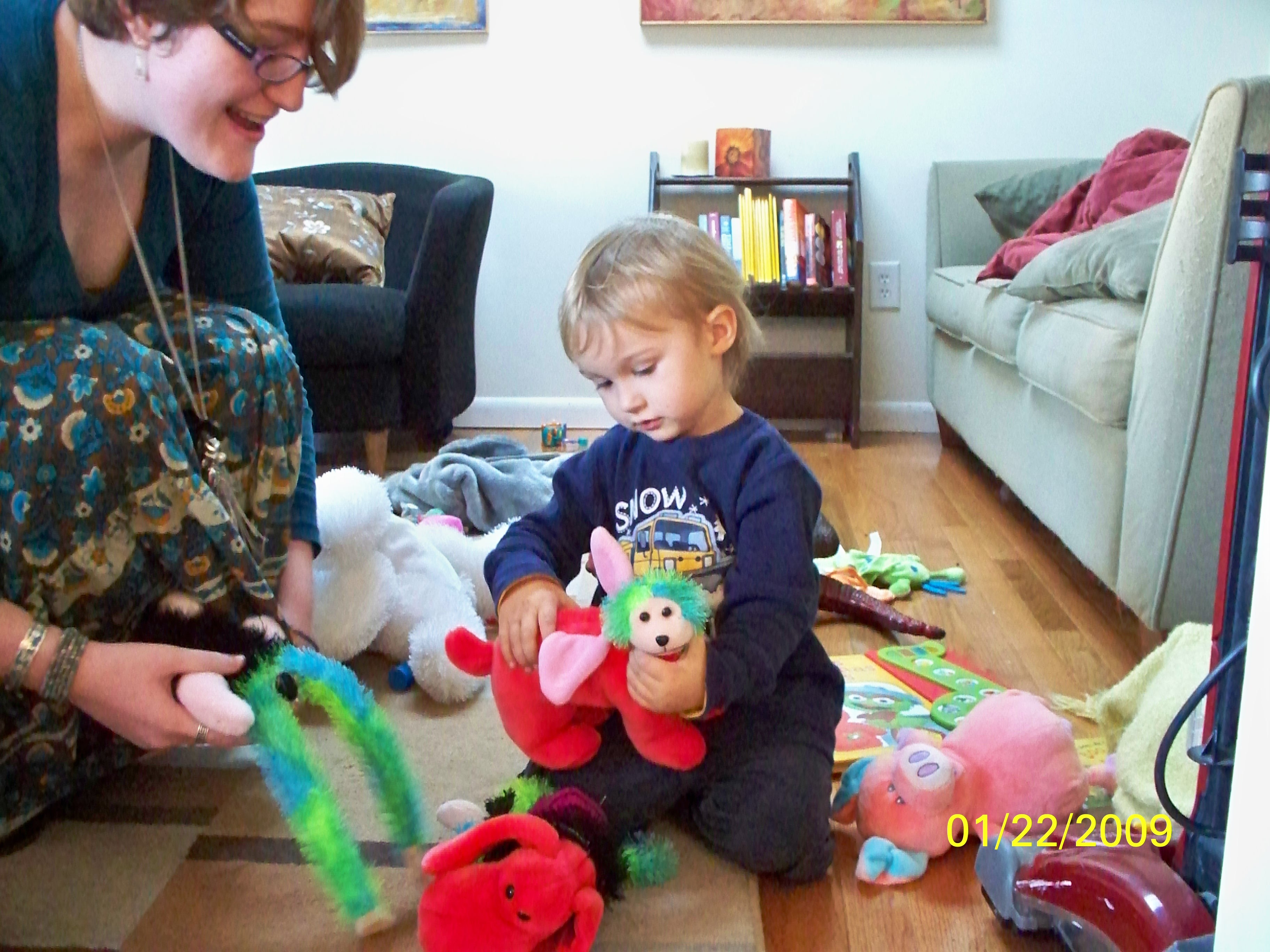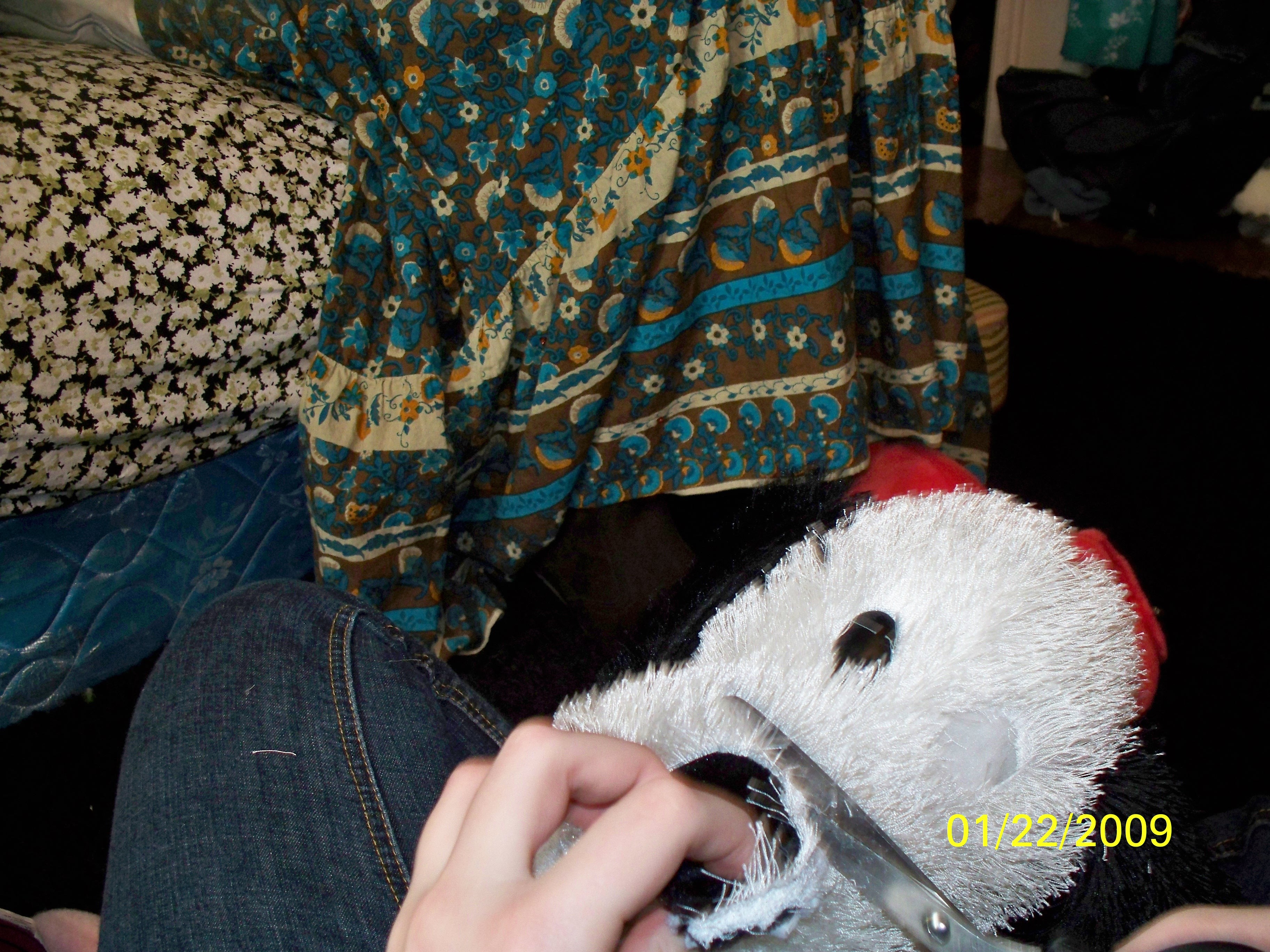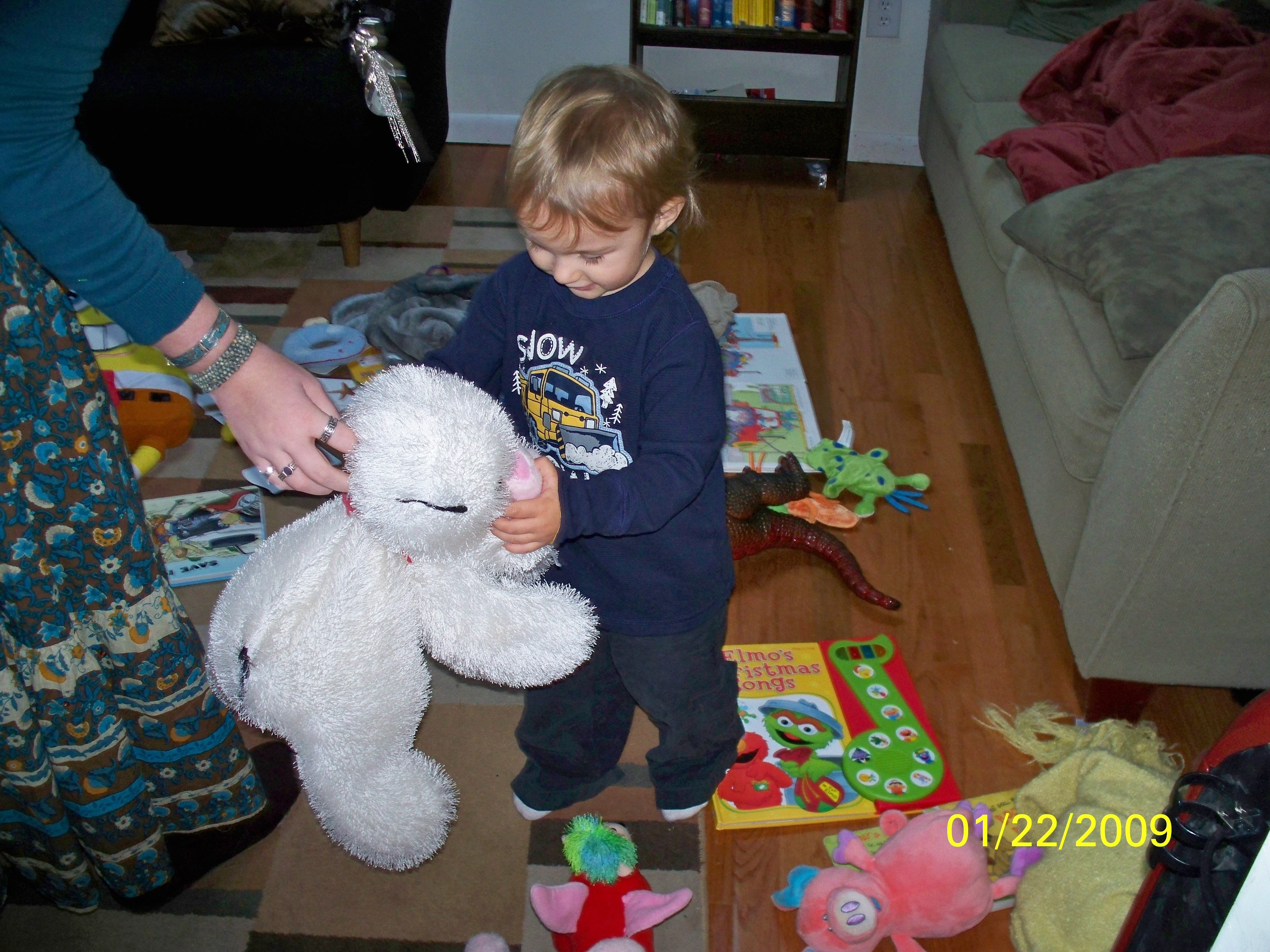 Over to Rebecca's house. She takes some unused stuffed animal's from her younger brother's room and we begin. We had a lot of fun jamming out the music and chilling. When we finished the toy, all completed without a clear direction in mind, we took them to her littlest brother. He seemed to enjoy them immensely, and was so cute!