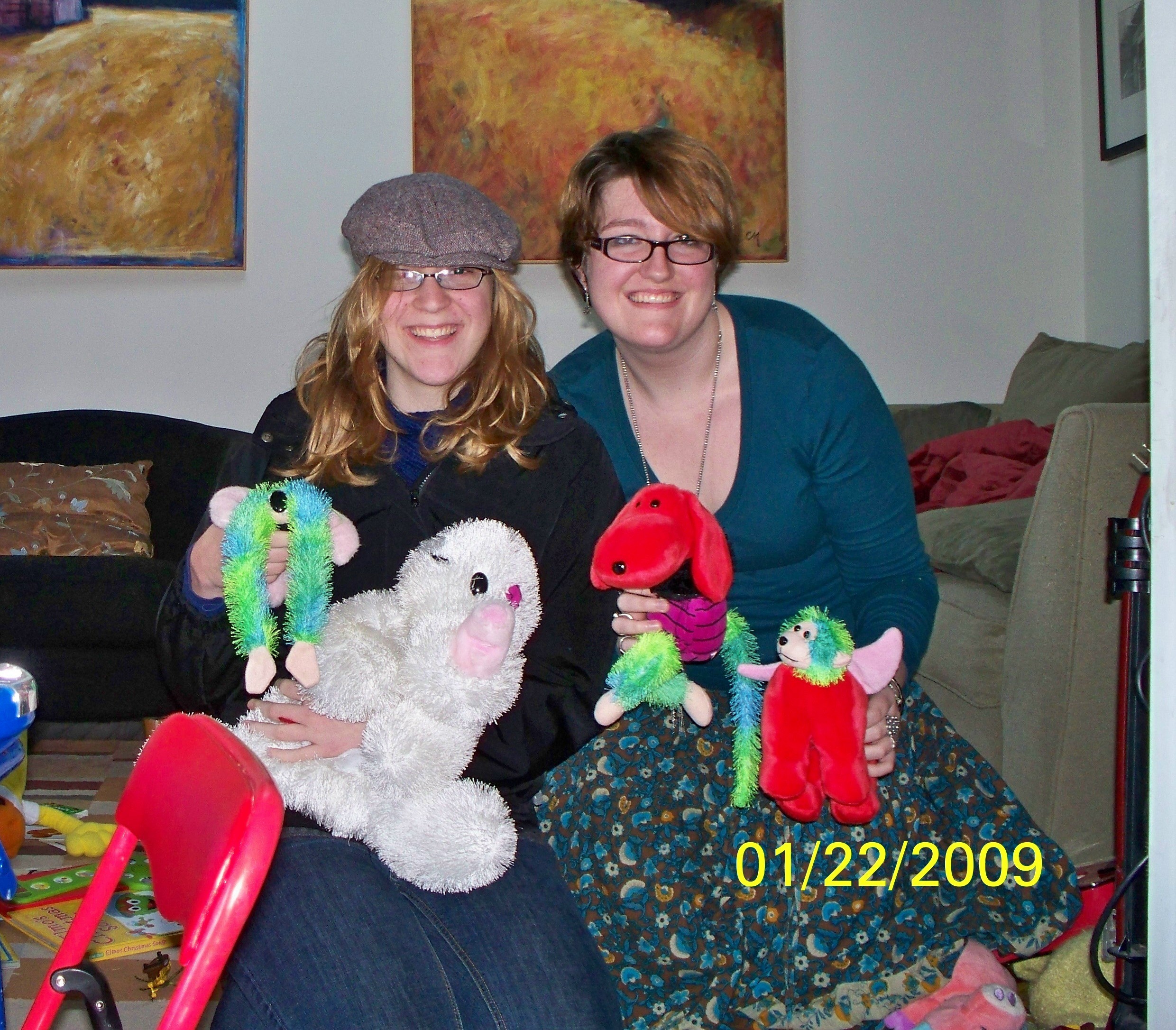 Then Rebecca's younger brother came home from school, the brother whose stuffed animals we had taken. It was entertaining to watch the scene play out before us, like we were watching a sitcom or something. The younger brother happily submitted himself to the littlest one running up to him in glee to show his older brother his new toys. The younger brother crouched down next to the littlest one, using that high voice that people use with children, pets, and old people. Then the younger brother saw clearly the thing that the littlest was holding up to him. Recognition slowly dawned on his face. "What?" He started to say, and then Rebecca and I crowed for him to see the rest of them. When we had assembled all the toys in front of him, his astounded face spoke volumes. "You're terrible!" He began admonishing us, "absolutely horrible!" He picked up and examined his now Frankenstein toys, looking them all round to see our handiwork. "What did you do?"