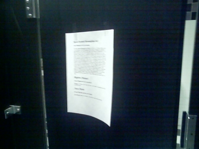 I printed out a bunch of info taken from Wikipedia. Alice helped me put one in every stall of the bathroom in the movie theater at our local mall. Right when we finished taking pictures a flood of women came in. Alice said she heard someone laughing when they entered a stall.