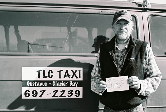 I just journeyed to the wilds of Alaska where I told the bears and various sea birds all about sf0; they were nonplussed. I was hell bent on getting this guy from the forest service to pull up the sf0 website on his forest service computer and suggest he start his own alaskan wilds version... but alas every time i was at the ranger station he was engrossed in bear safety instruction with campers. I ended up informing our taxi driver and self proclaimed "local expert for your Alaskan vacation" all about sf0. I think he thought it was a cult, but he was kind enough to pose with my crude logo. He was not happy about the crude logo and suggested I email him a proper one which he would kindly display and inform the massess about. John is rad. If you are ever in Glacier Bay and need a ride, John Spute TLC Taxi... he's spreading the word.