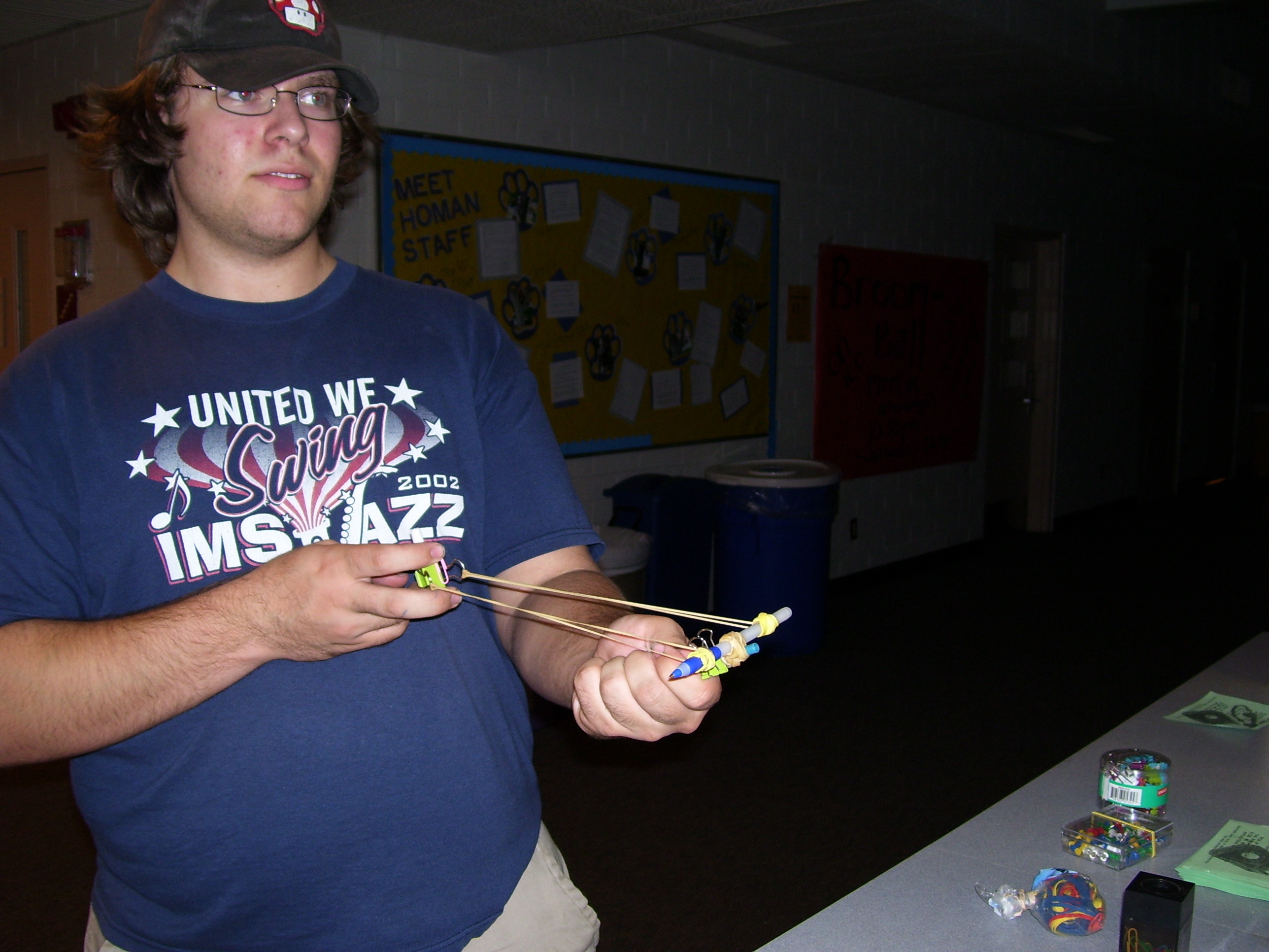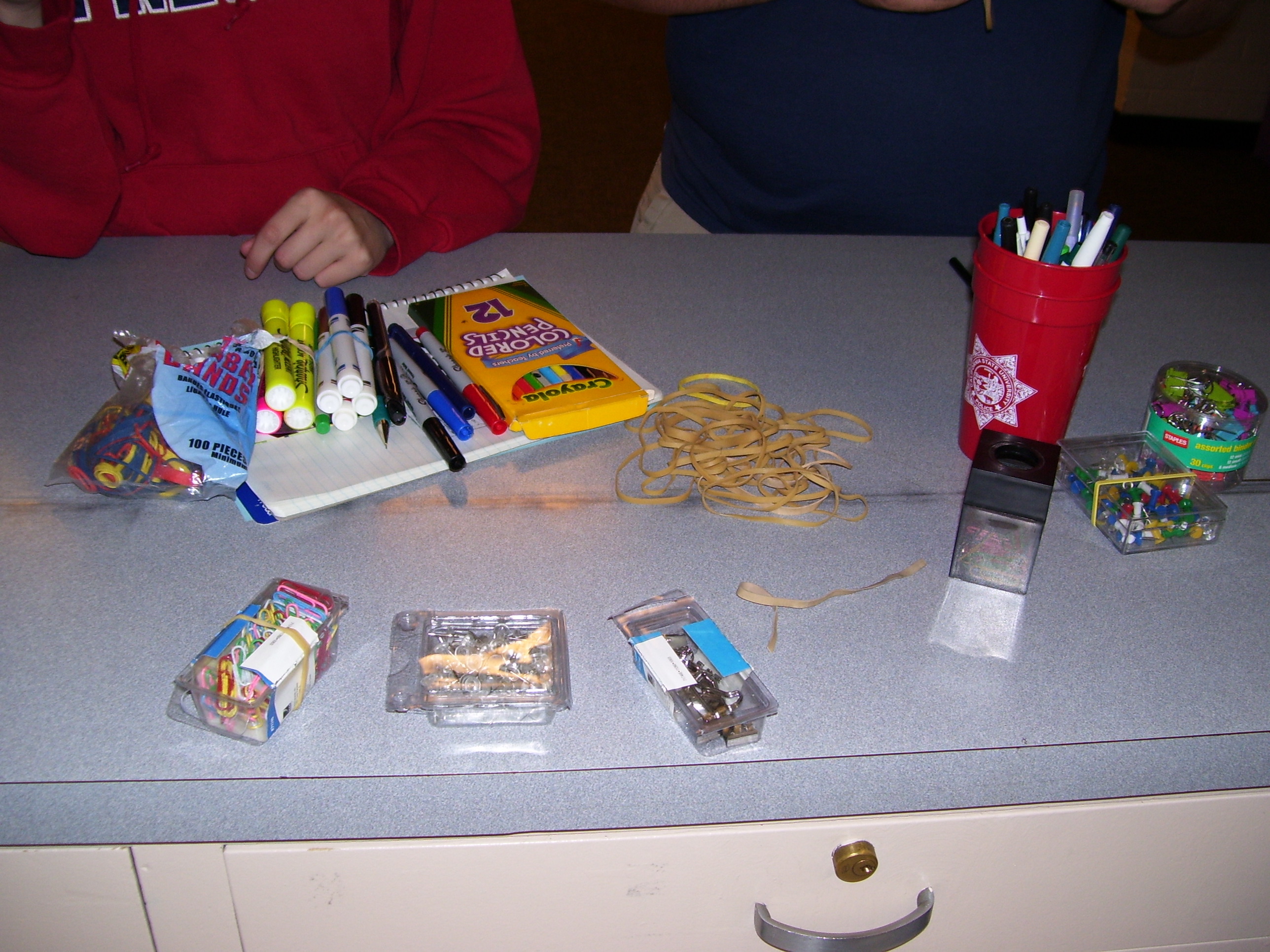 "Office" is a not-so great term for the desk where I sometimes have to sit for four hours at a time. Well, since I was working tonight, I quickly messaged the new players in my hall with a simple, "making weapons out of office supplies at the desk tonight. Be there."