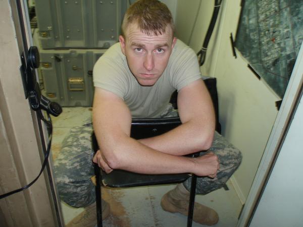 This is me here in Iraq. I like this photo because I was tired and hugging the chair and it turned out it made my arms look slightly bigger. :D