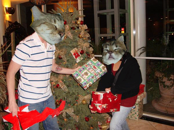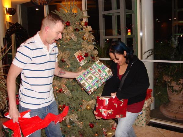 My best friend and I opening 'pretend' presents that were under a christmas tree in a hotel in LA. Everytime we unwrapped one of the empty boxes, there was more wrapping underneath.