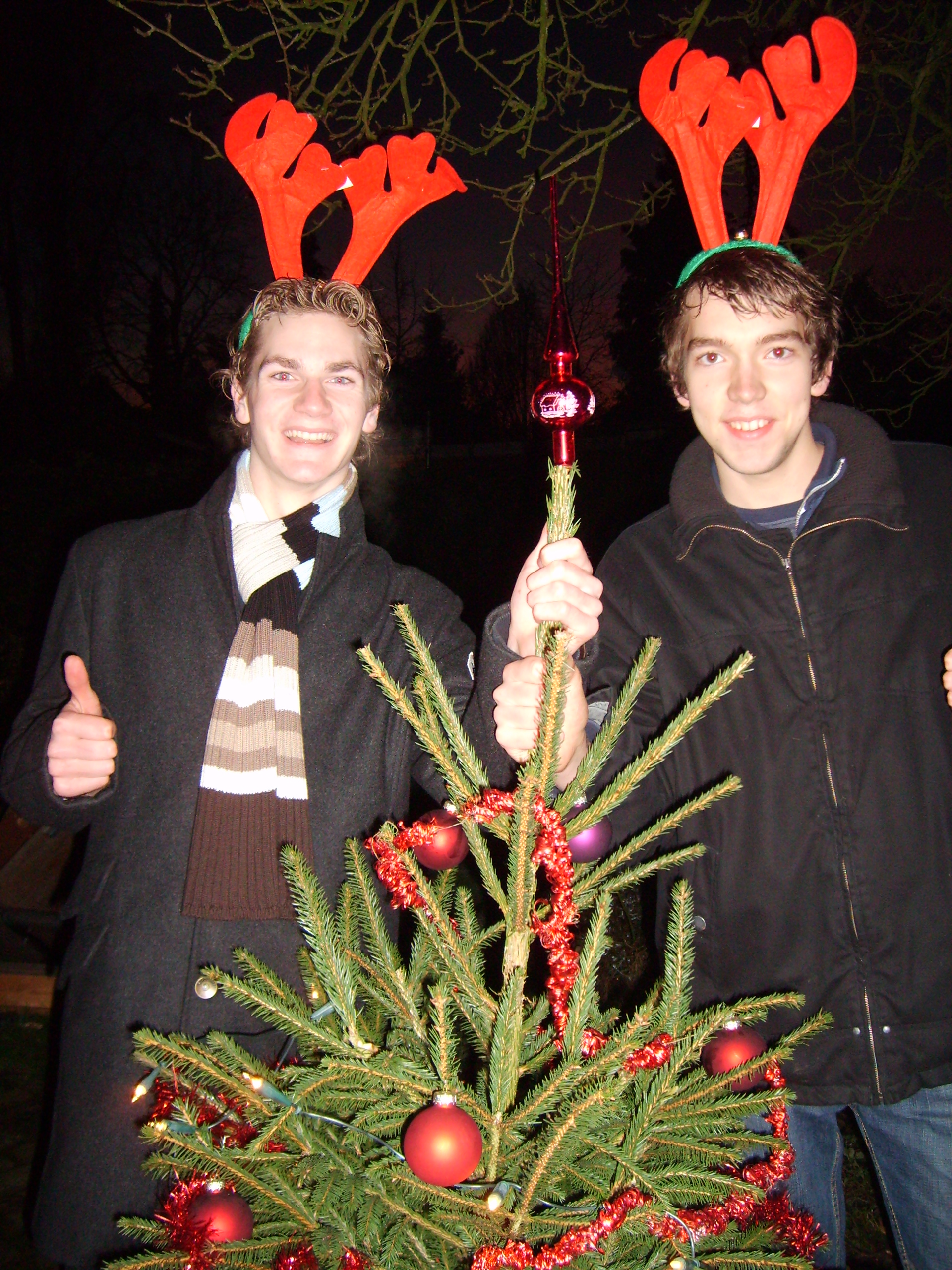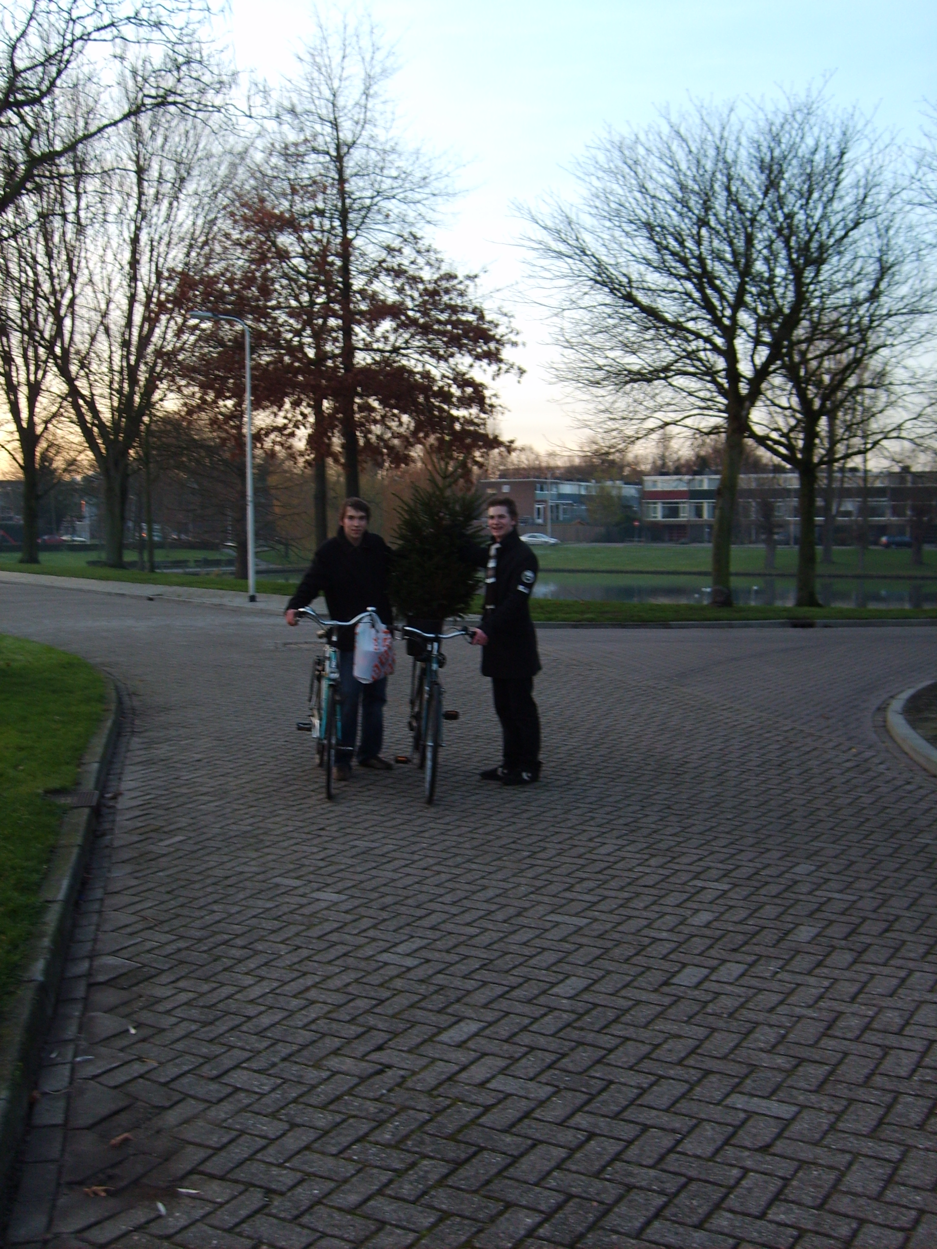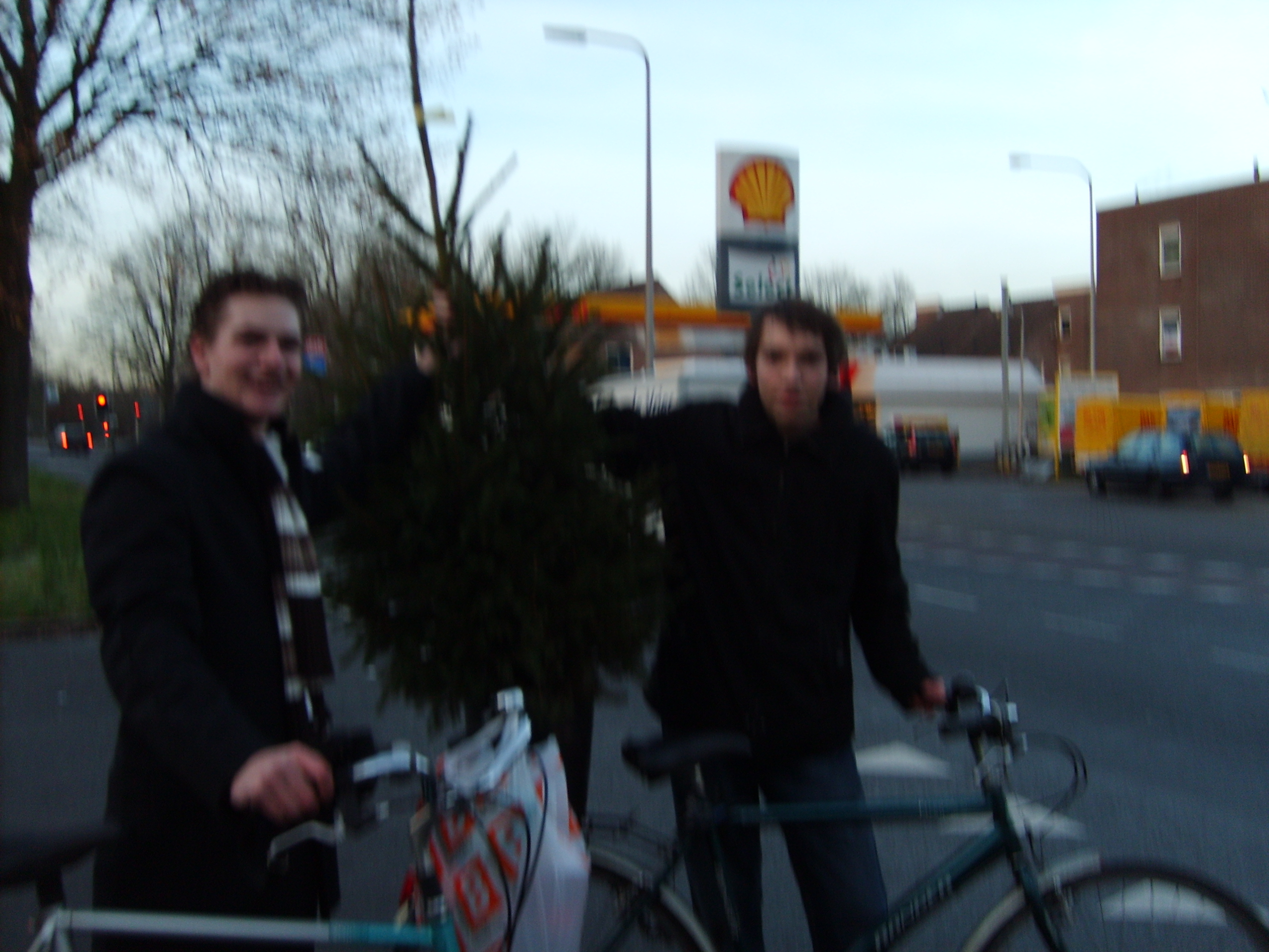 At first we were planning to place a normal house-plant in our school hall, but we that turned out to be too expensive (we deidn't really want to spend a lot of money on this task. It wasn't until the chrismas season started when we had a much better idea. Since our school had no chrismas trees or decoration whatsoever, we decided to bring our very own potted tree to school (I know it's not a plant but hey, who ever heard of christmas plants?). We had the idea on the tuesday before the holidays, we were still at school so we went straight to the janitors and teamleaders (We didn't really feel like showing up with a tree and being sent back because of a possible fire hazard or something). They weren't really all that exciting because they weren't sure wether it's was legal or not, but we got our permission and so we went shopping. We went to the local shopping mall by bike to purchase a tree (yeah, not a good idea). We got one for roughly 10$ and bought some decoration as well. Then came the hard part, we had to take the tree home on our bikes. We decided to balance it on the back of one of our bikes and just walk it home.