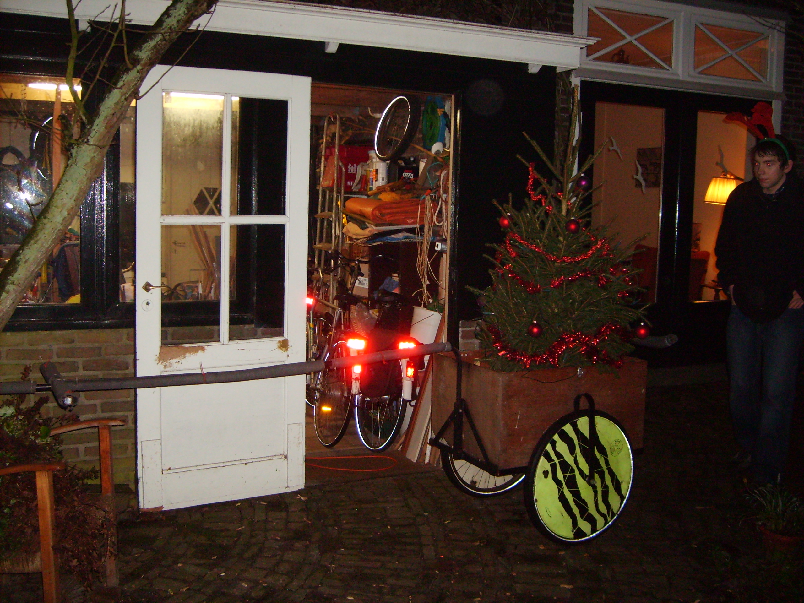 Not only did this finally give some use to the cart which we weren't using anymore, it also allowed us to decorate the tree before we went to school the next morning and drive through our town with a decorated tree, which is good fun. When the cart was ready, we started decorating the trees. We bought some balls earlier at the mall and we found a peak, lights and some other stuff in our old christmas stuff and so the fun could start. We started with the peak and some other stuff: