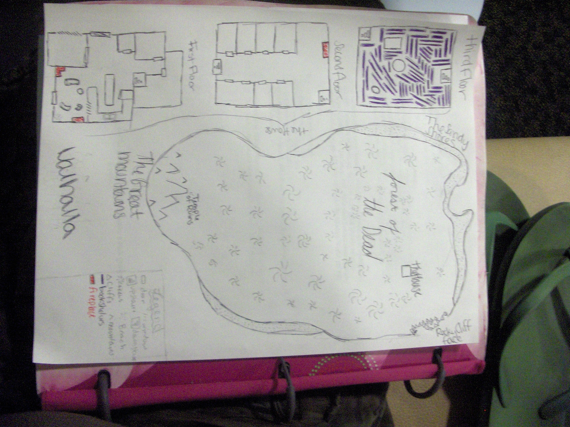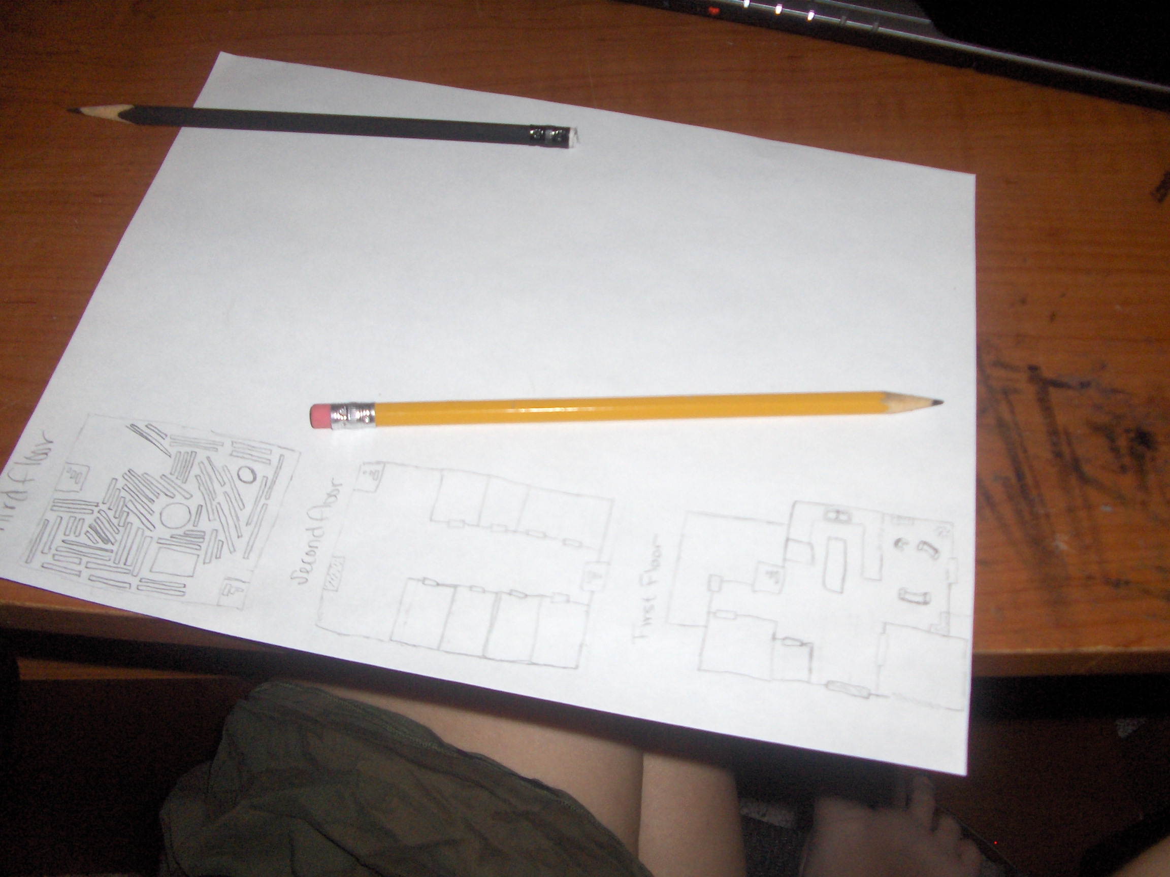 Within The House, there are five floors (only three are drawn because I don't know what the other two look like). The First Floor is basically a common area, living room, kitchen, dining, sitting room, etc. The Second Floor is living areas and a common room for the younger residents. The Third Floor is nothing but books, books, books. The fourth and fifth floors are living areas and common rooms for the adults.