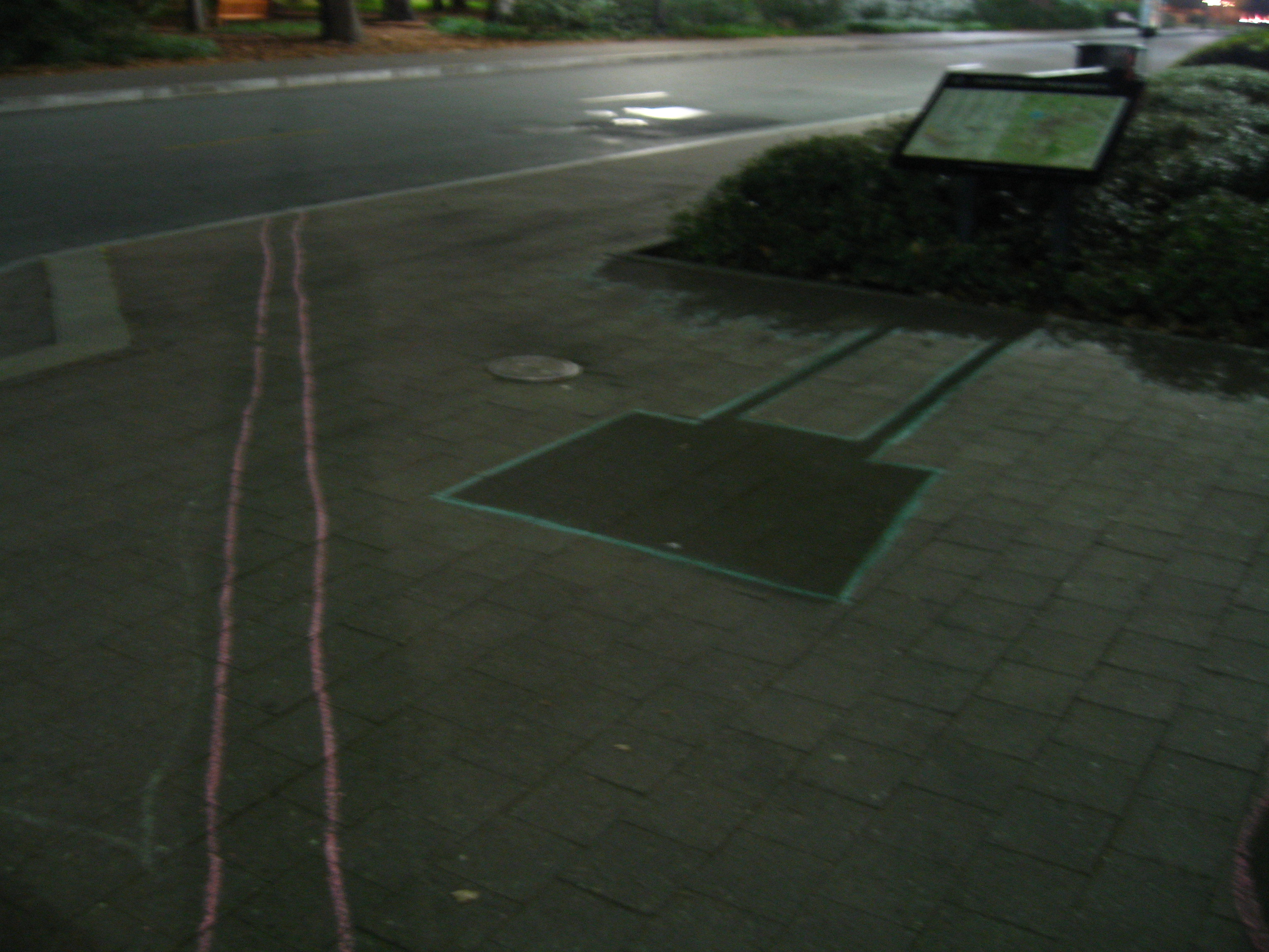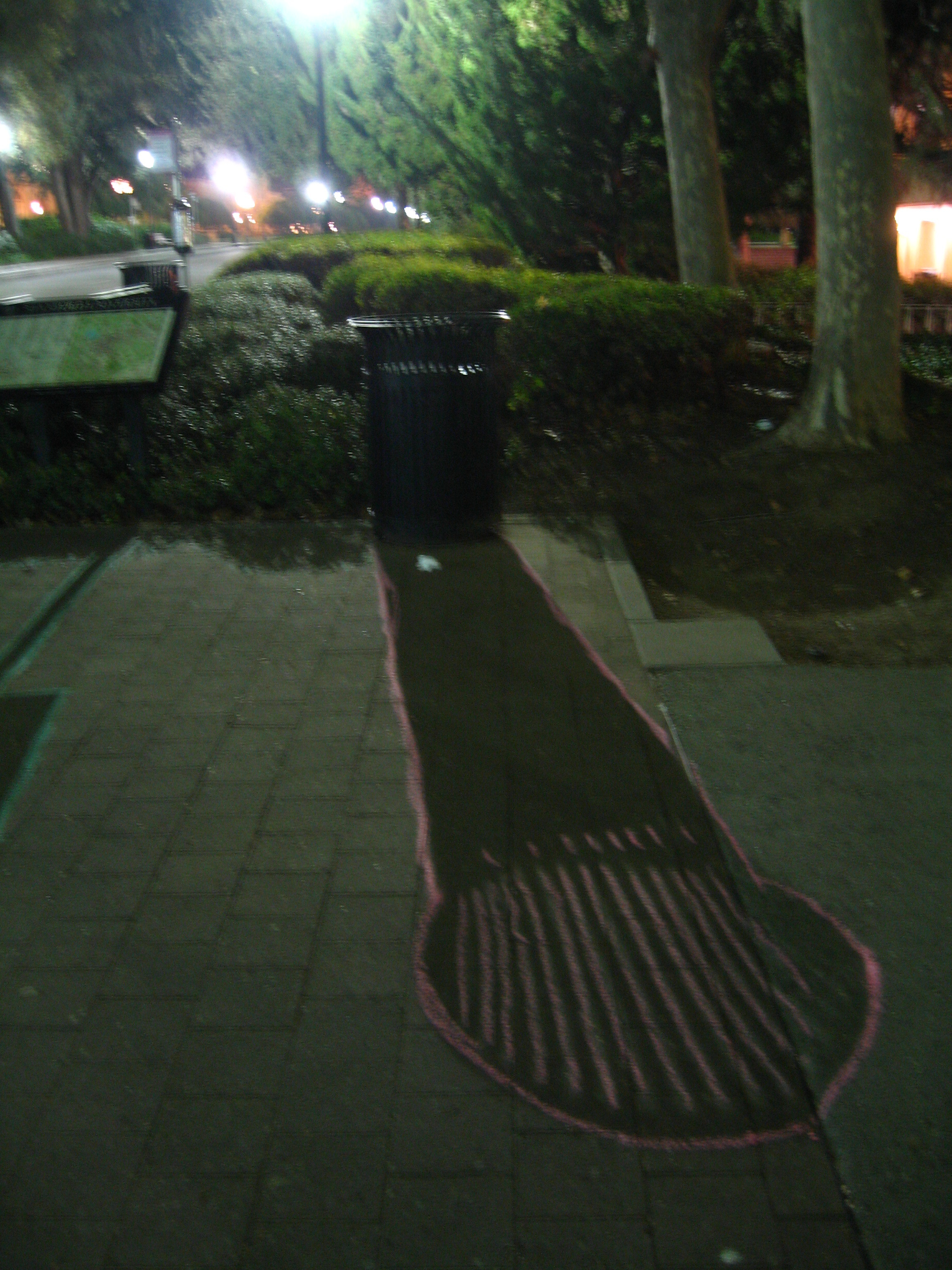 While i find these lines incredible entrancing during the night, they are even more spectacular during they day, when they interact with the shadows of the daytime and appear to be merely random chalk lines, completely disconnected from the object that formed them.