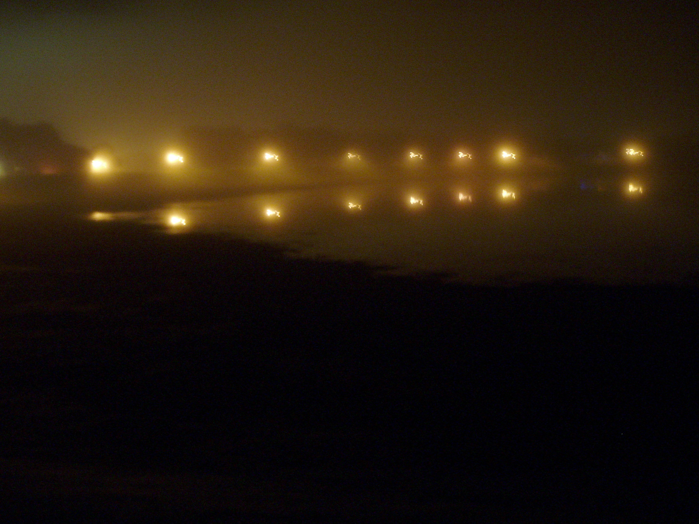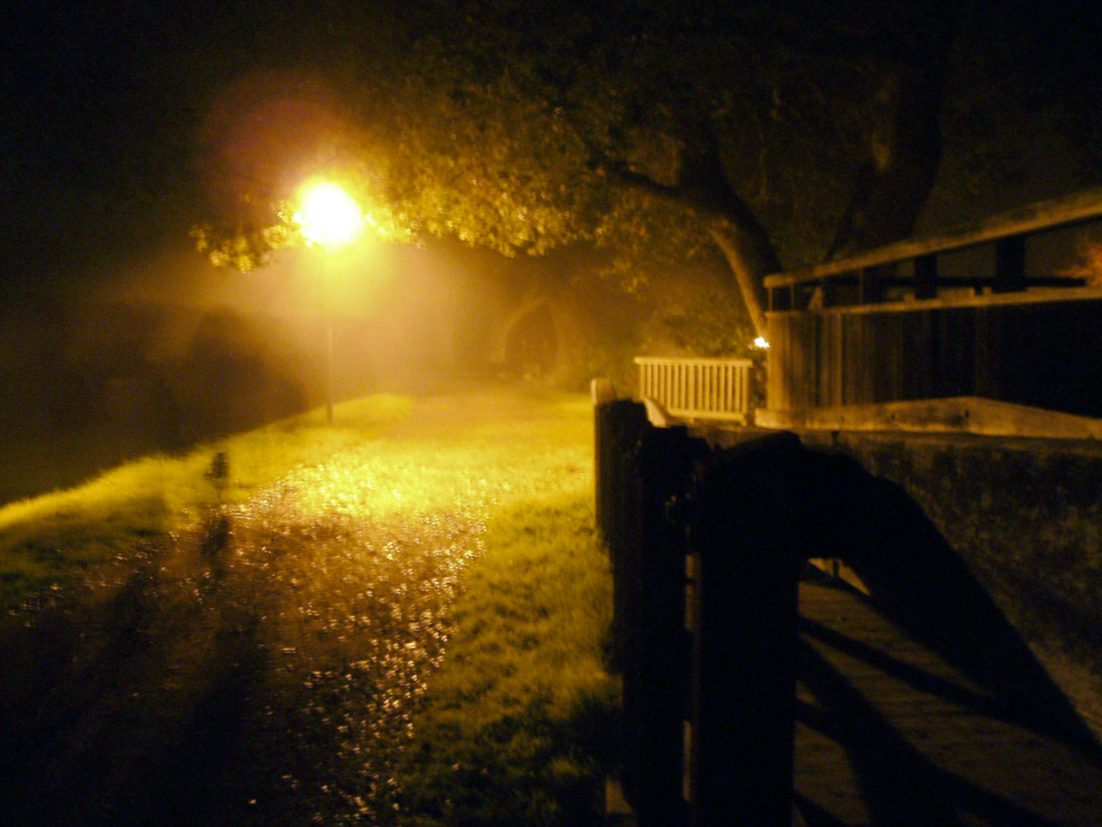 I was about to submit this task when i reread the title. I realized i had missed the deepest and darkest of night, and instead captured the mundane and shallow of the night. Thus, I ventured out again. This time it was again late, however, i went for a walk around the 'lake' this time on what turned out to be a very foggy night. Due to the foggy conditions, my camera recorded the little available light almost as a painting.