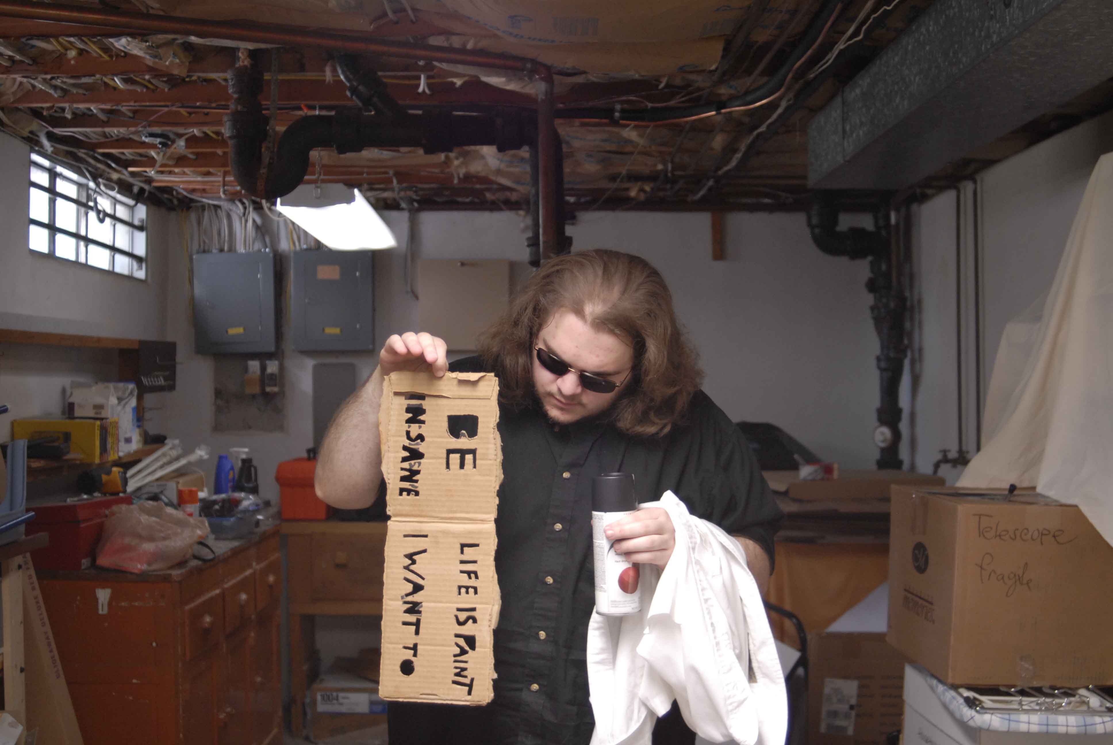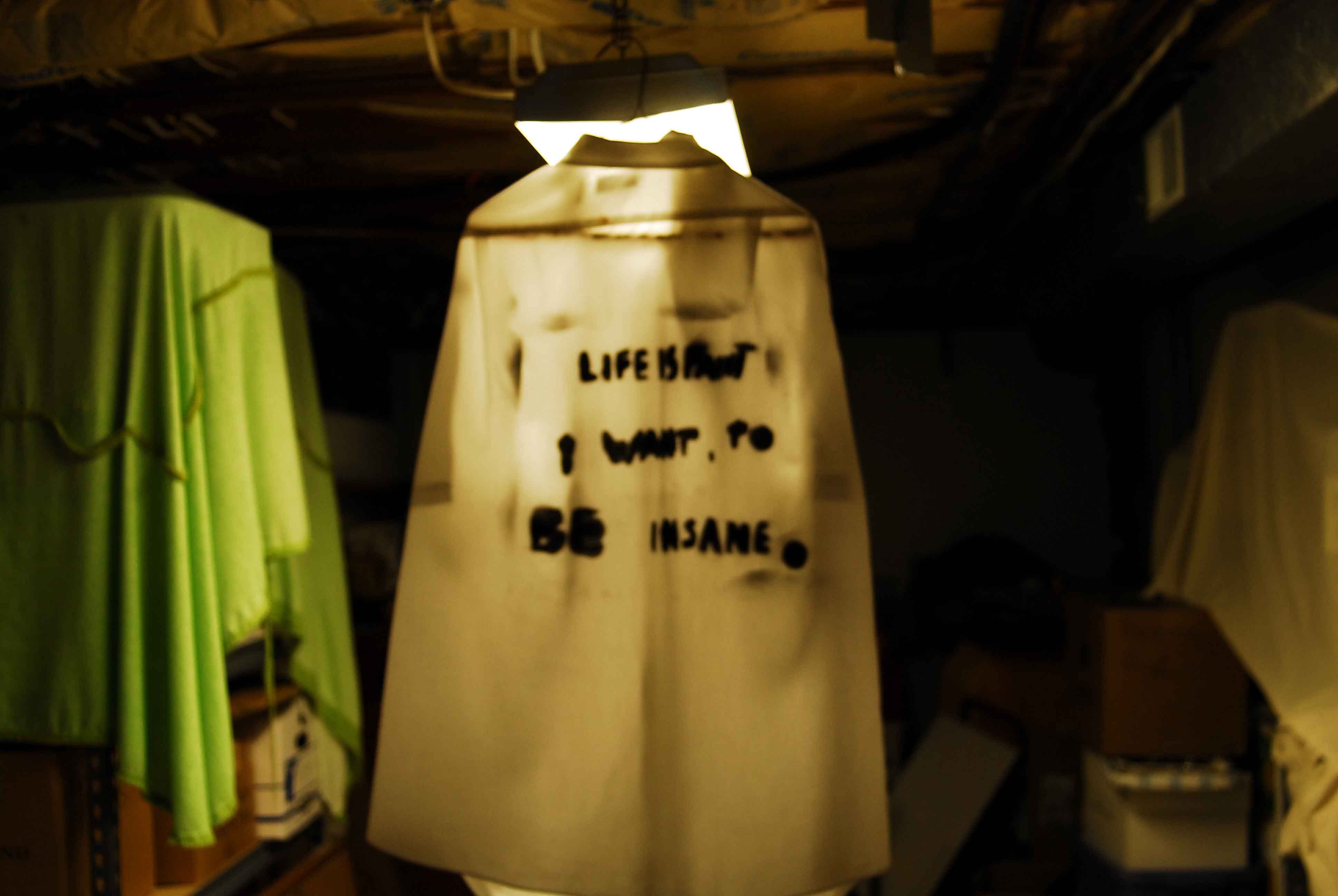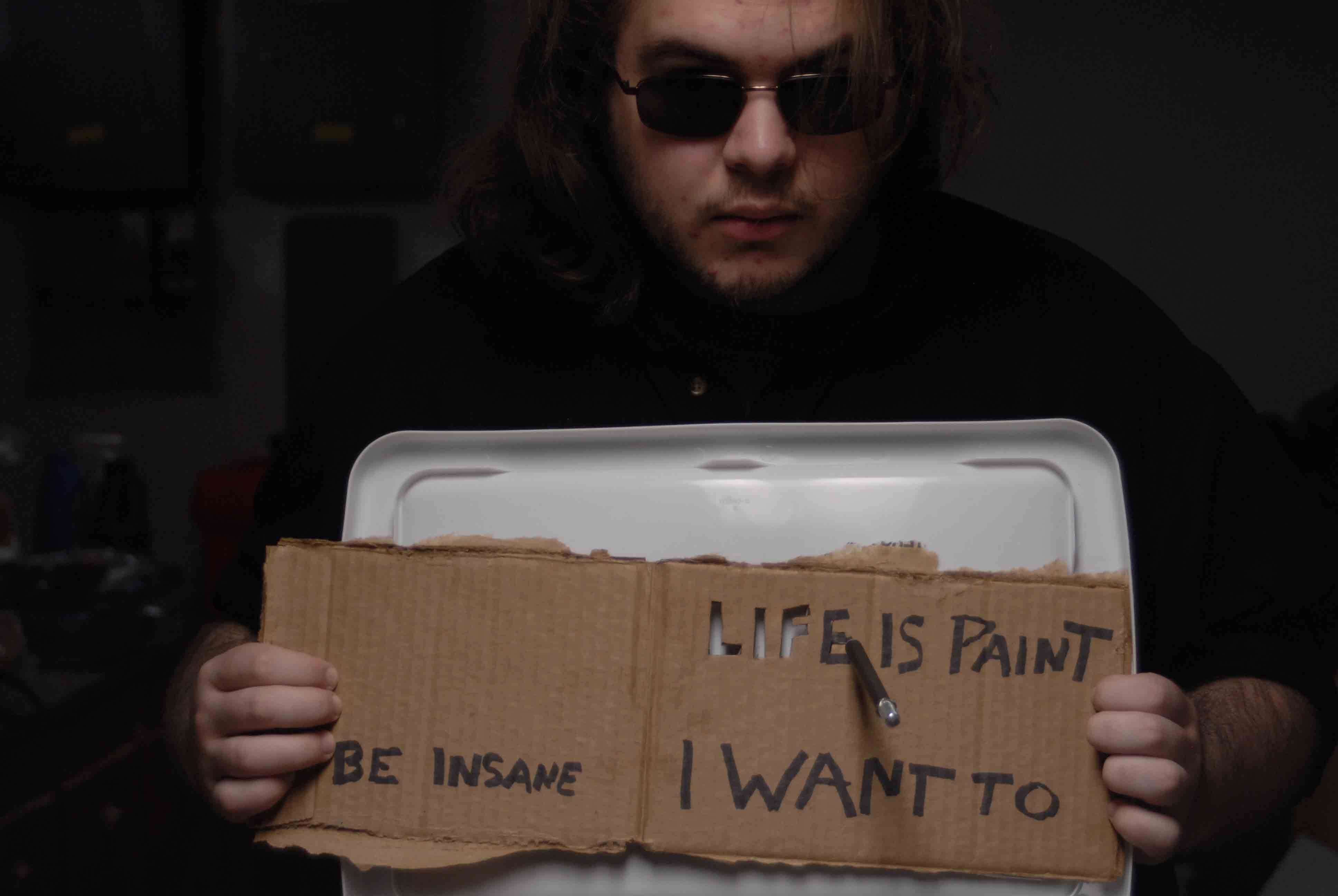 photobump.Heavy Mind: Mal (super mean) had told me he would sponsor me on the level 2 task if it would get me playing, but on the condition that the shirt we made would be gifted to the other. I took a couple of days to come up with a good "U of A" slogan, and even tried calling the rest of the team, but Ted (super fly) didn't answer, and Mal, on the subject of the task, would only quote unhelpful Rollins stand-up. Hence, his reward: 'Life is paint. I want to be insane'.