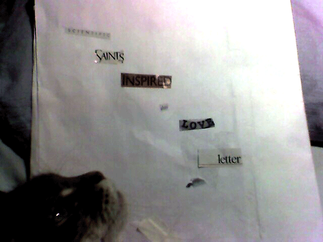 Although we had started laying out a wildly improbable epistle from some bicycle bats, I soon realized that I needed both more space and a gluestick. Project tabled in a large white envelope.